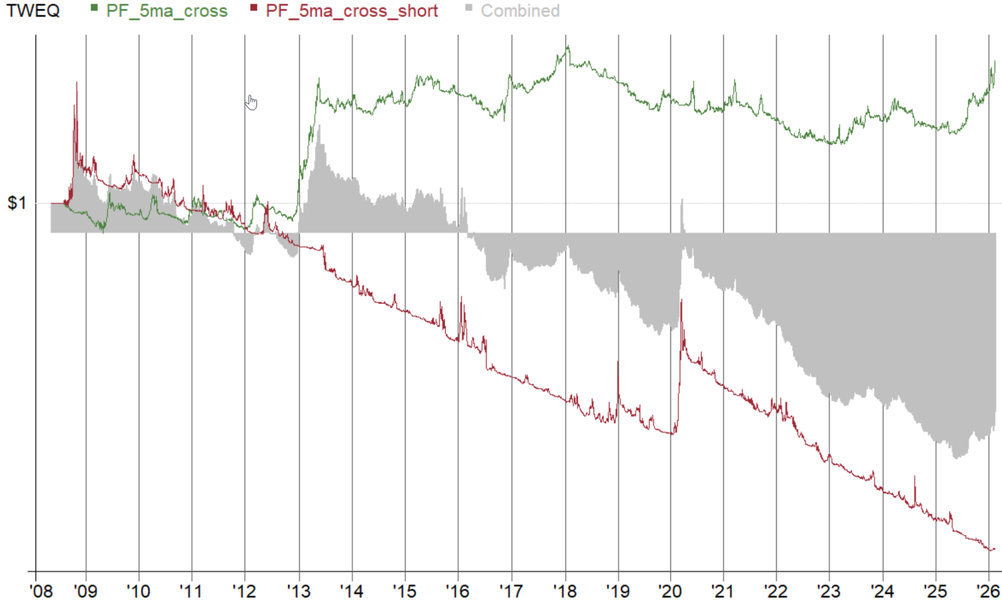 ロングの薄い優位性が、ショートのマイナスで打ち消されてしまいます。少なくとも、この考え方をそのまま機械的に使うなら、買いと売りを対称に扱うのは難しいと言えそうです。