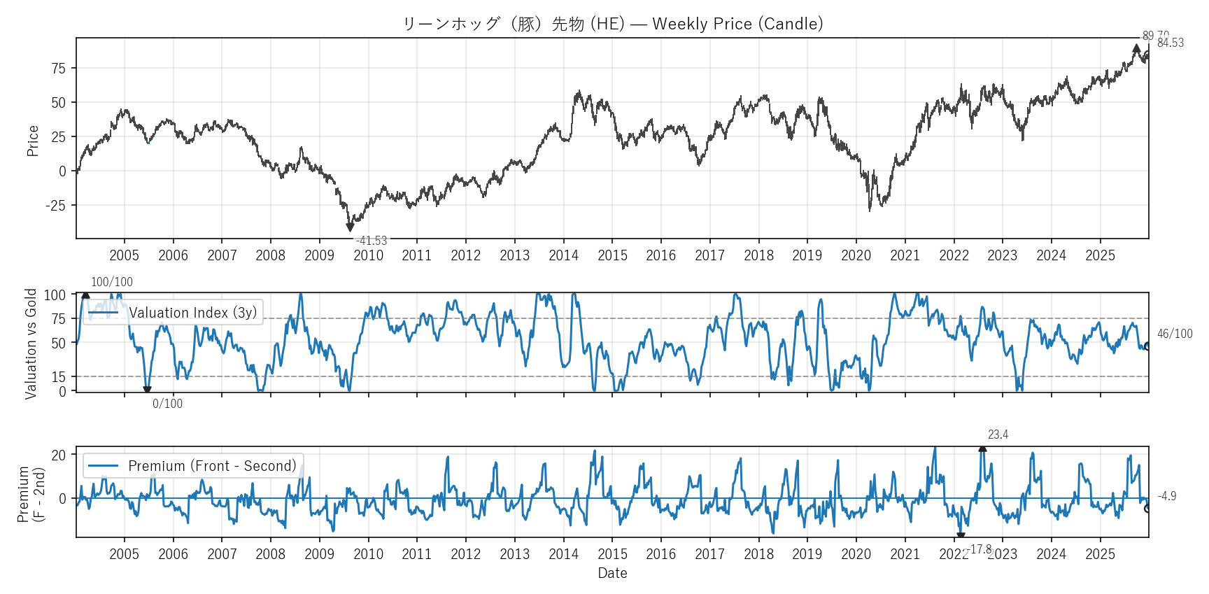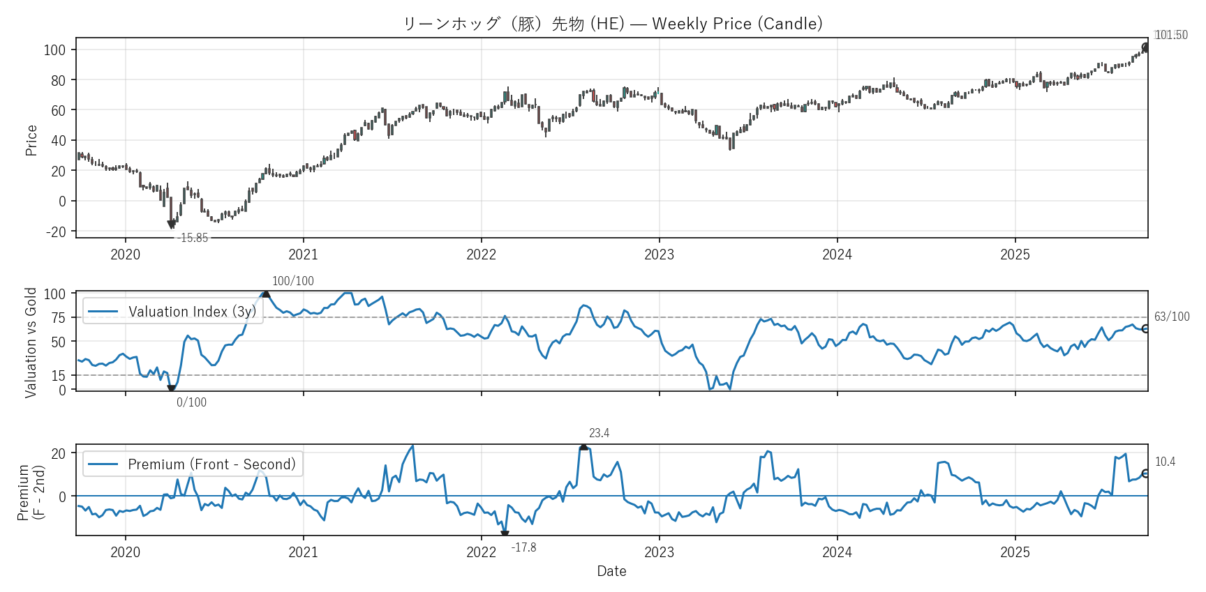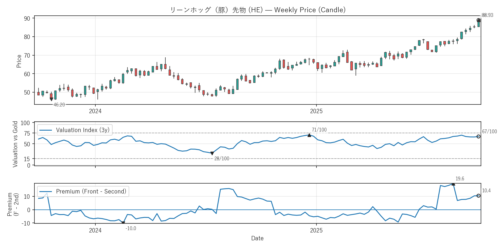 リーンホッグ(豚)先物。FX/CFD例: (業者依存)。注意: 疾病・輸出動向で急変動。