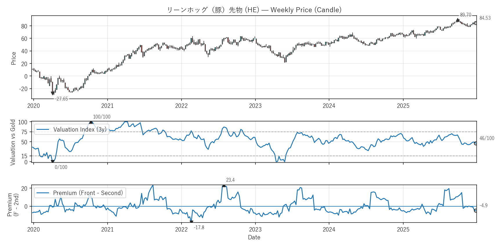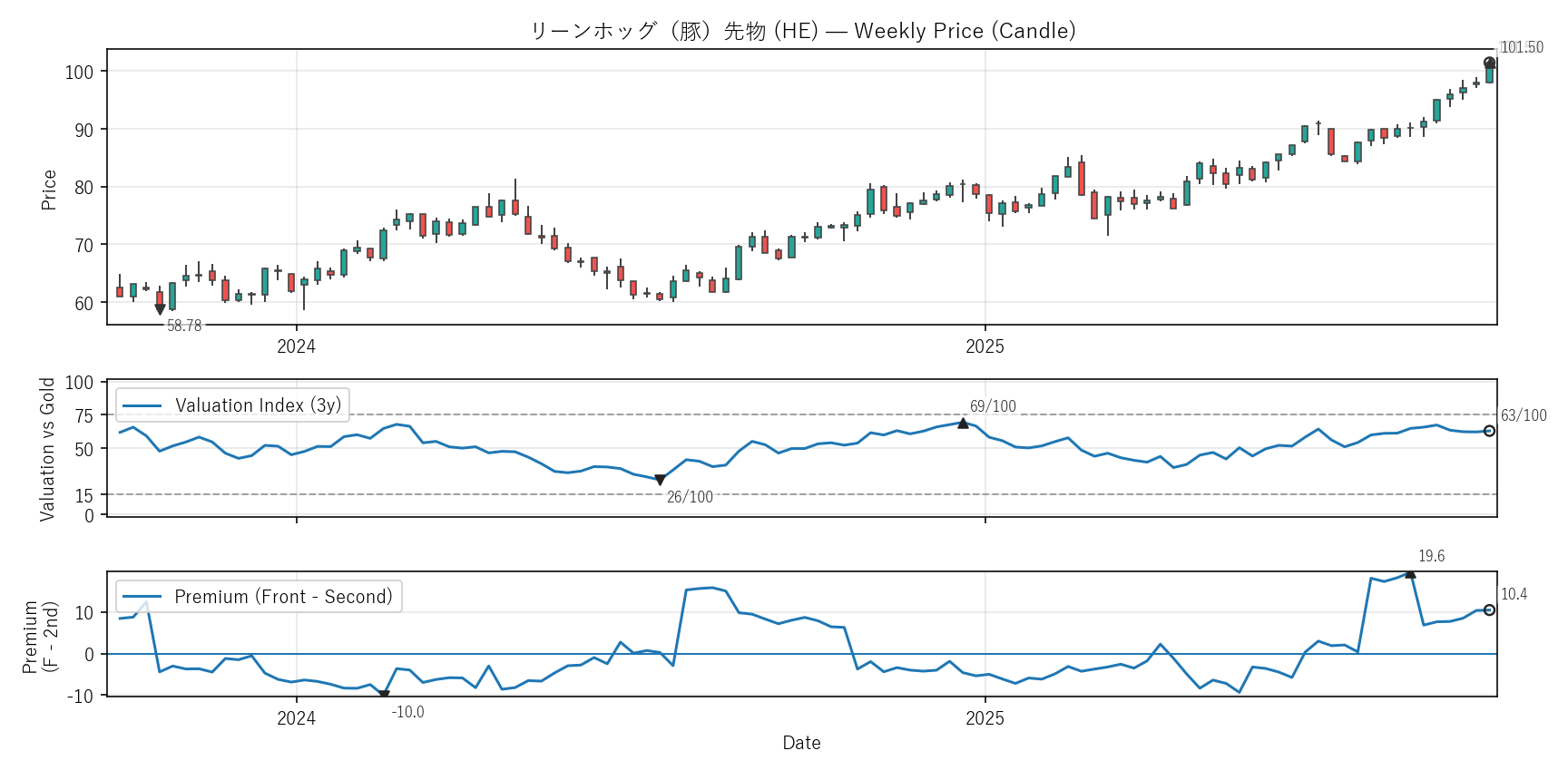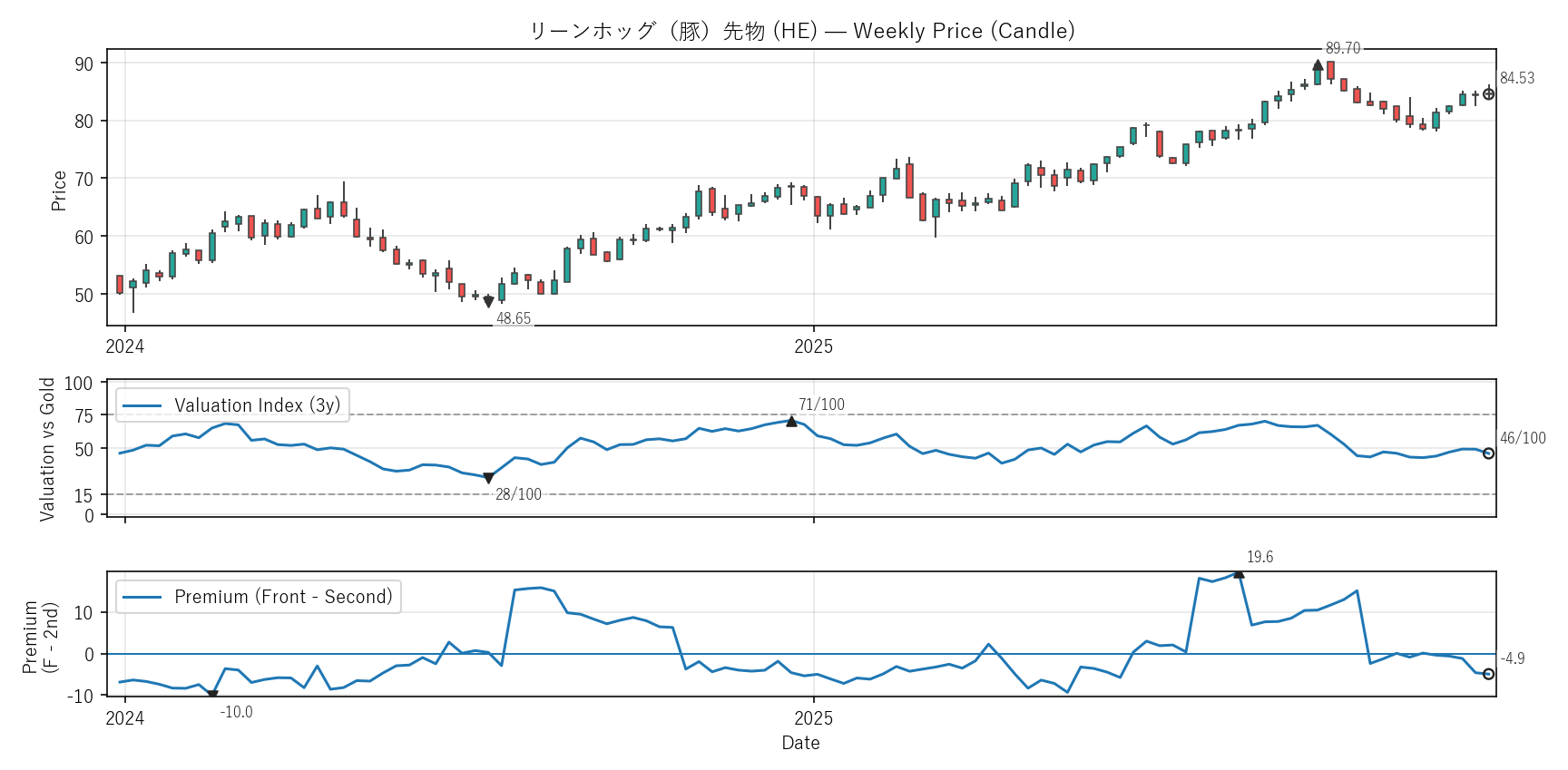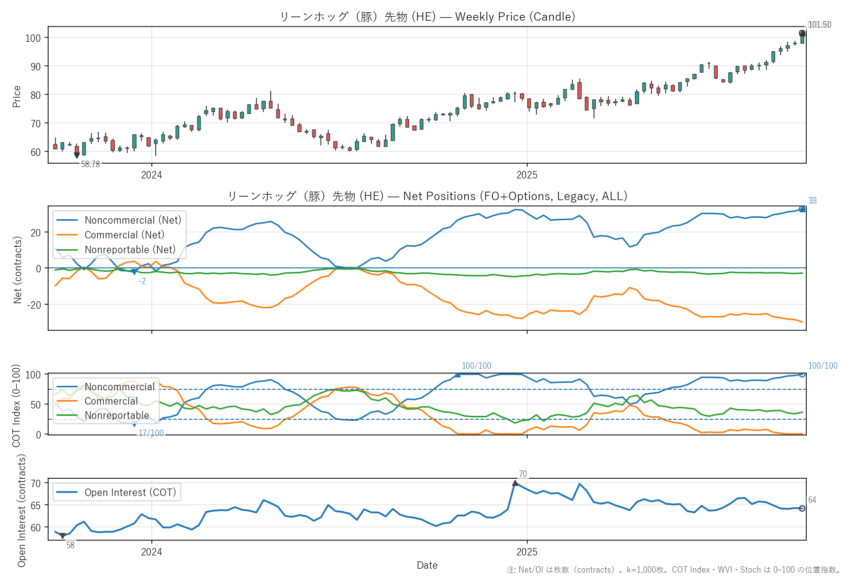 リーンホッグ(豚)先物。FX/CFD例: (業者依存)。注意: 疾病・輸出動向で急変動。