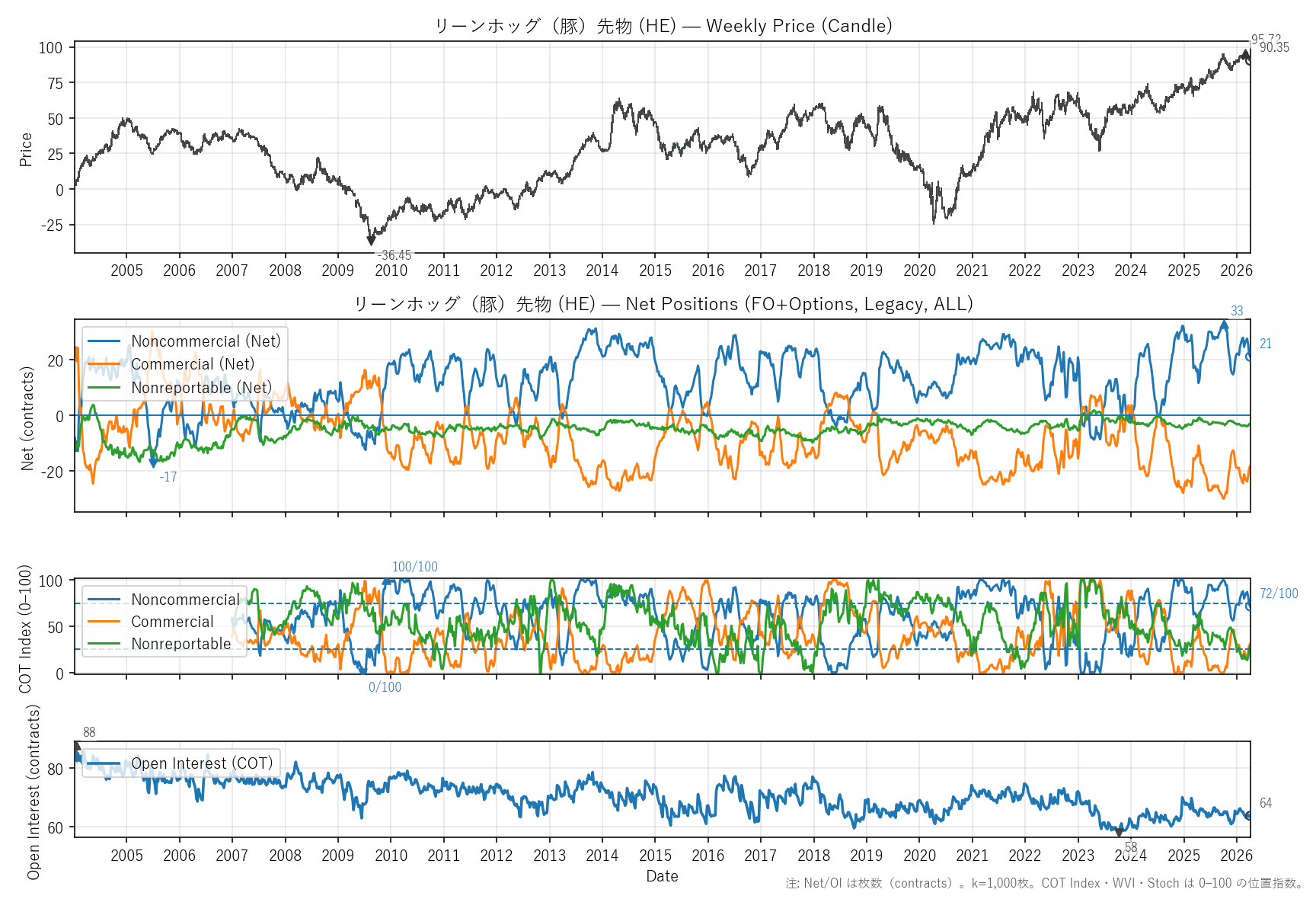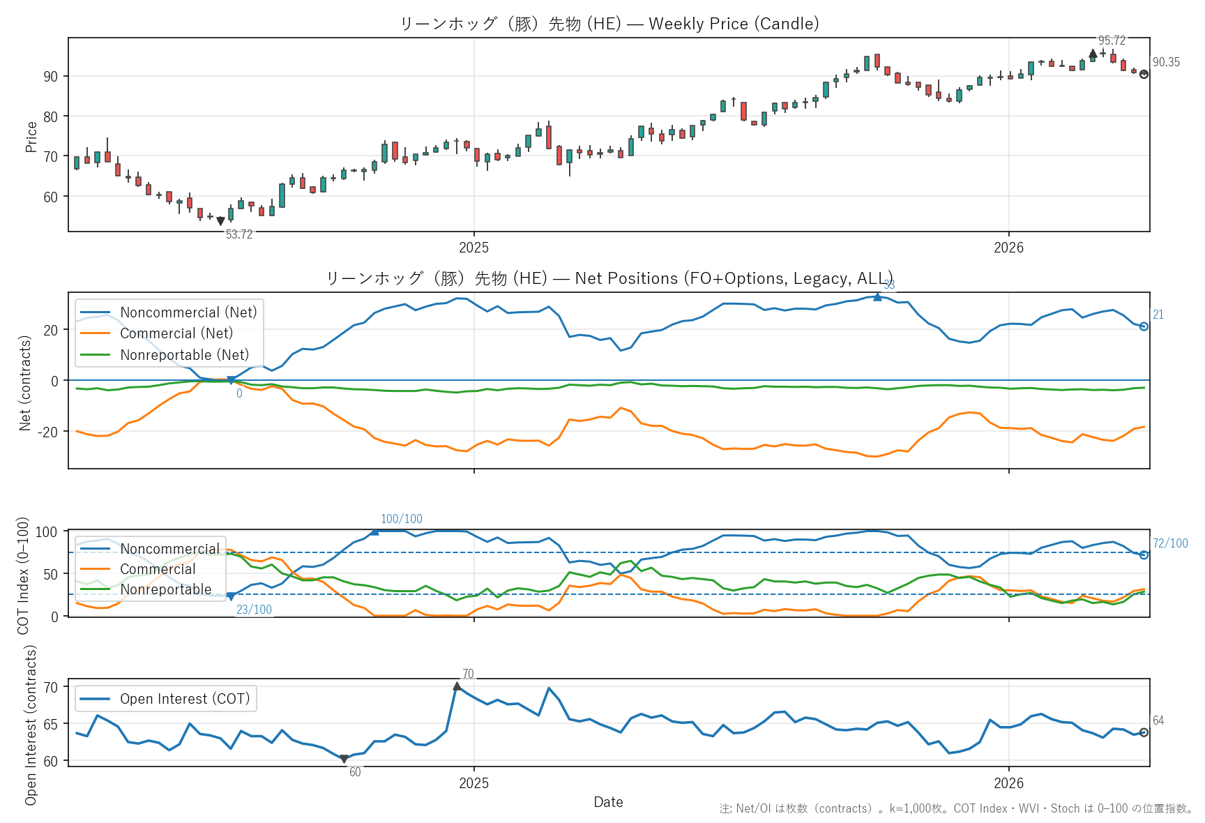 非商業COT指数:72(23〜100)|位置 63/100 / 商業COT指数:31(0〜79)|位置 40/100 / NR COT指数:28(13〜74)|位置 24/100