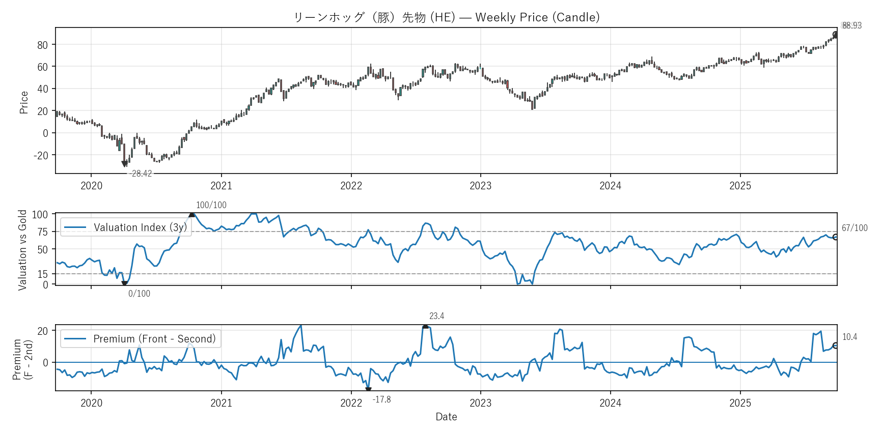 先週比(2025-09-26):Valuation:+3.7pt(43 → 47) / Premium:+0.1(10.3 → 10.4)