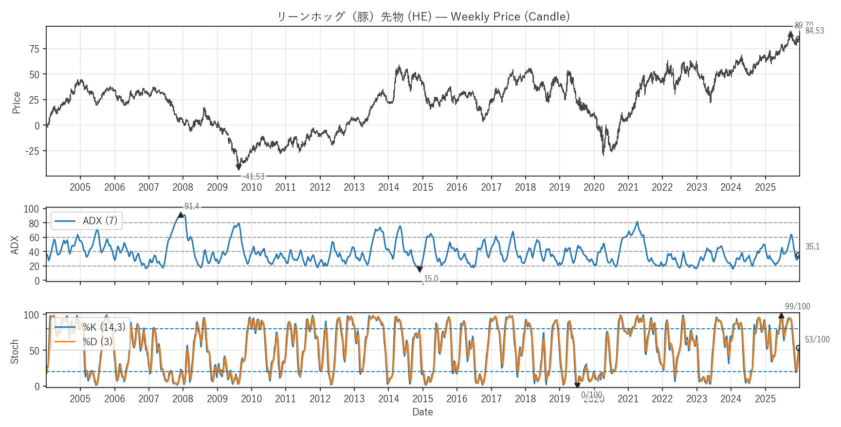 ADX:35.1(15.7〜63.8)|位置 40/100 / Stoch %K:53(4〜99)|位置 52/100