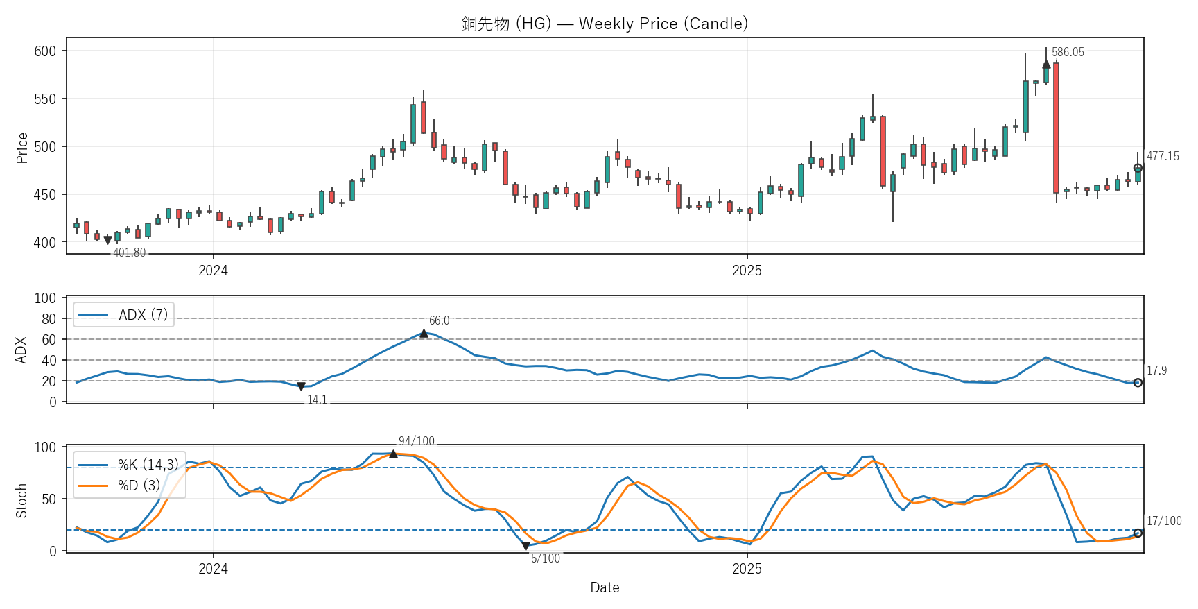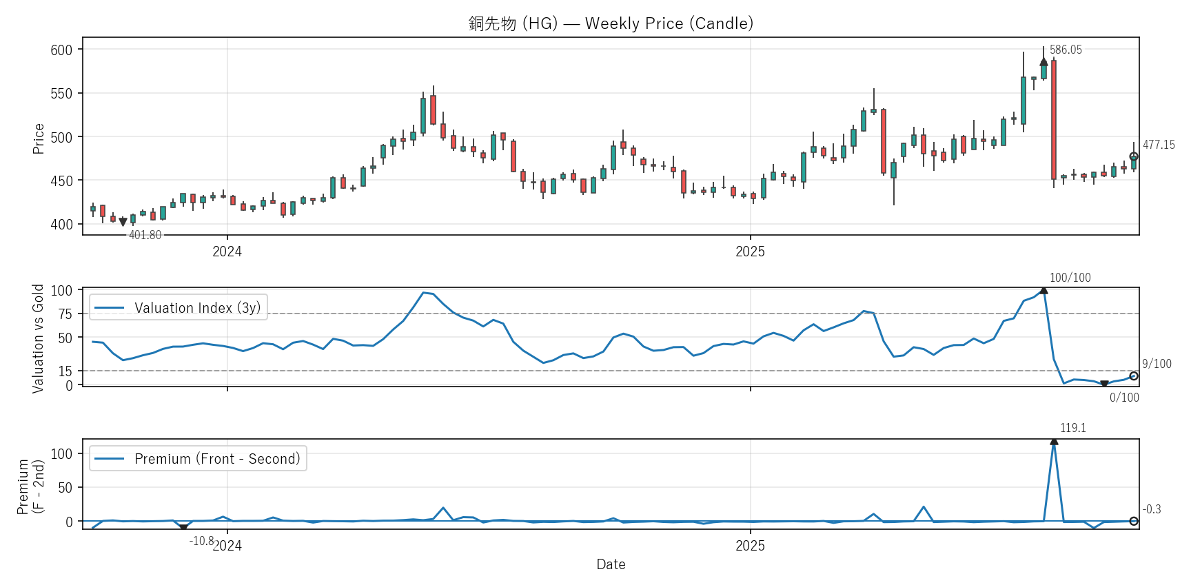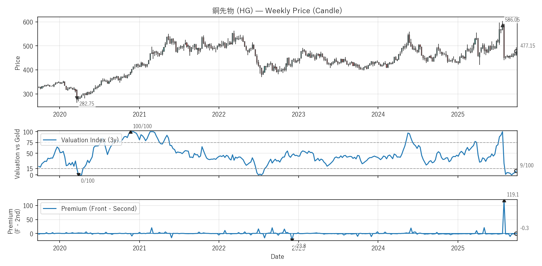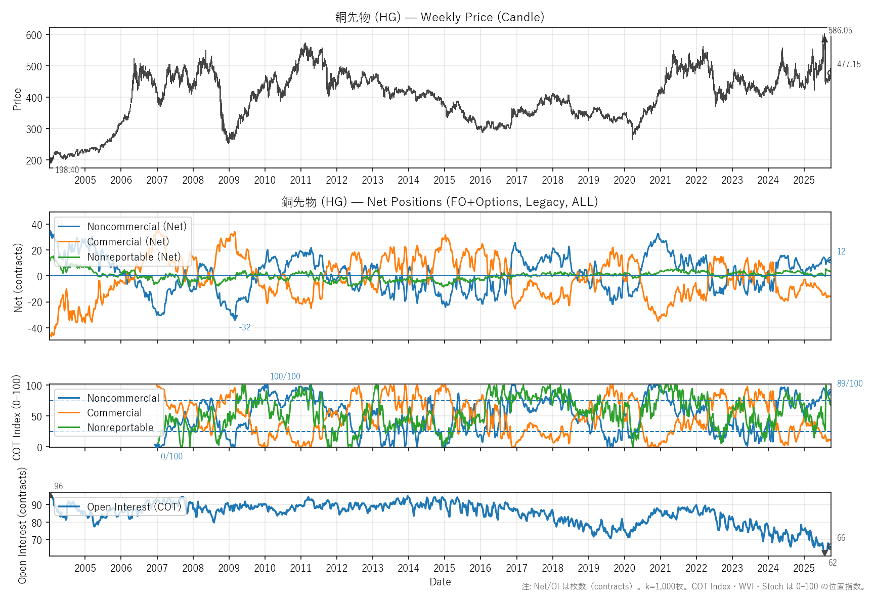 銅先物(HG)COTレポート・バリュエーション・テクニカル【週足】