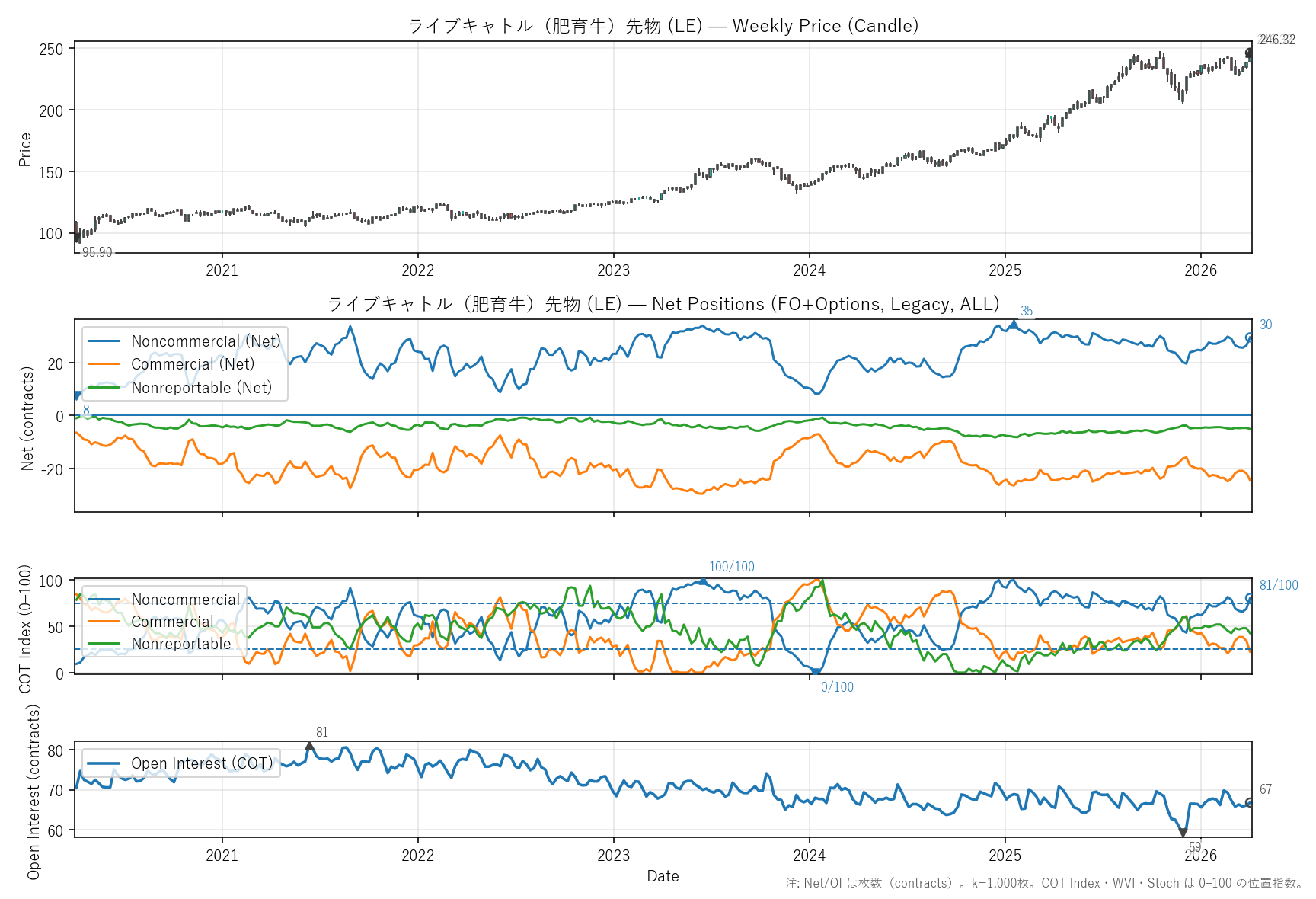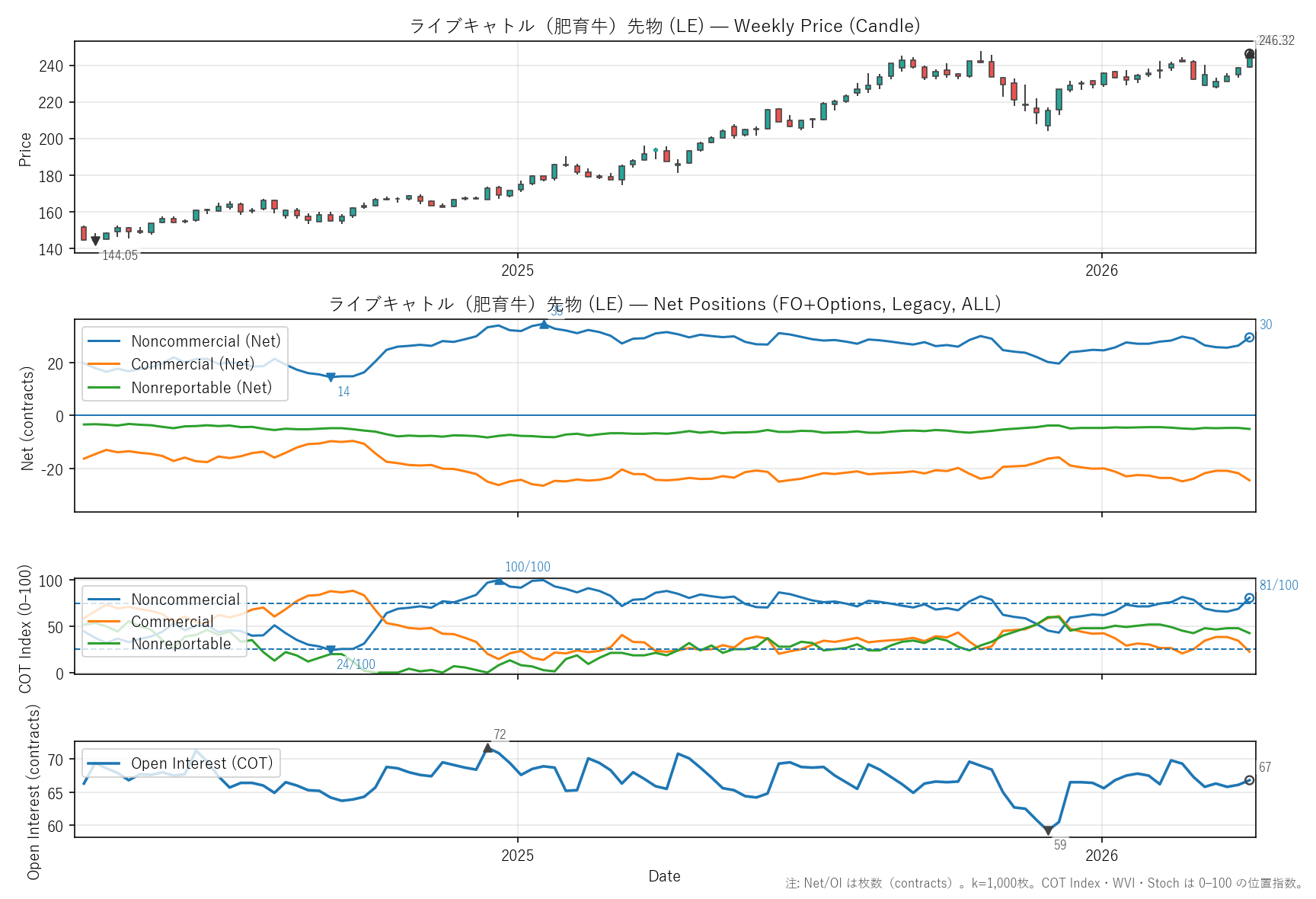 ライブキャトル(肥育牛)先物のCOTレポートです。