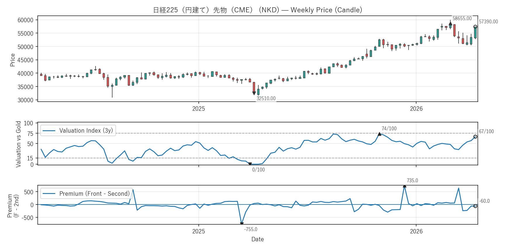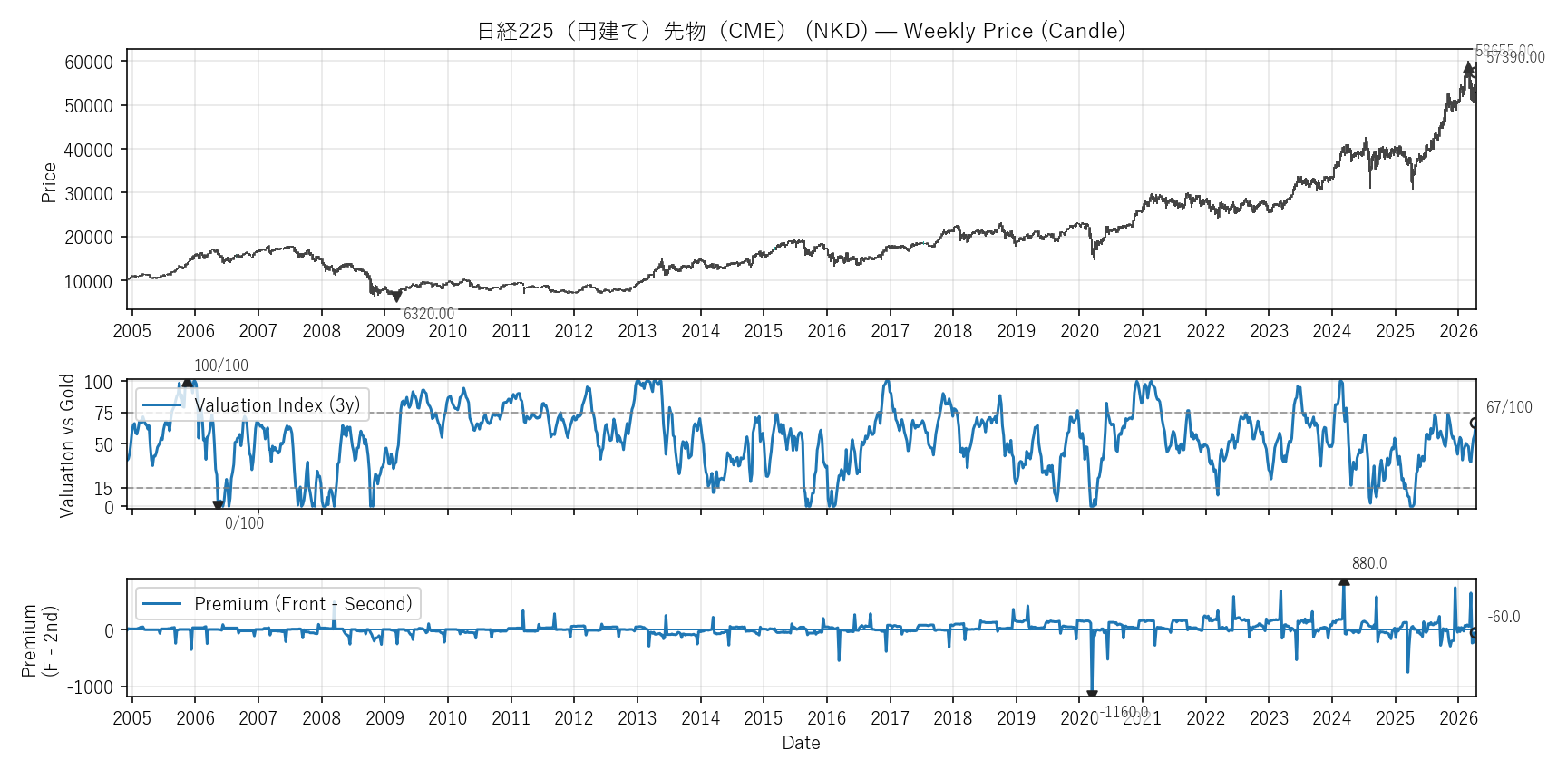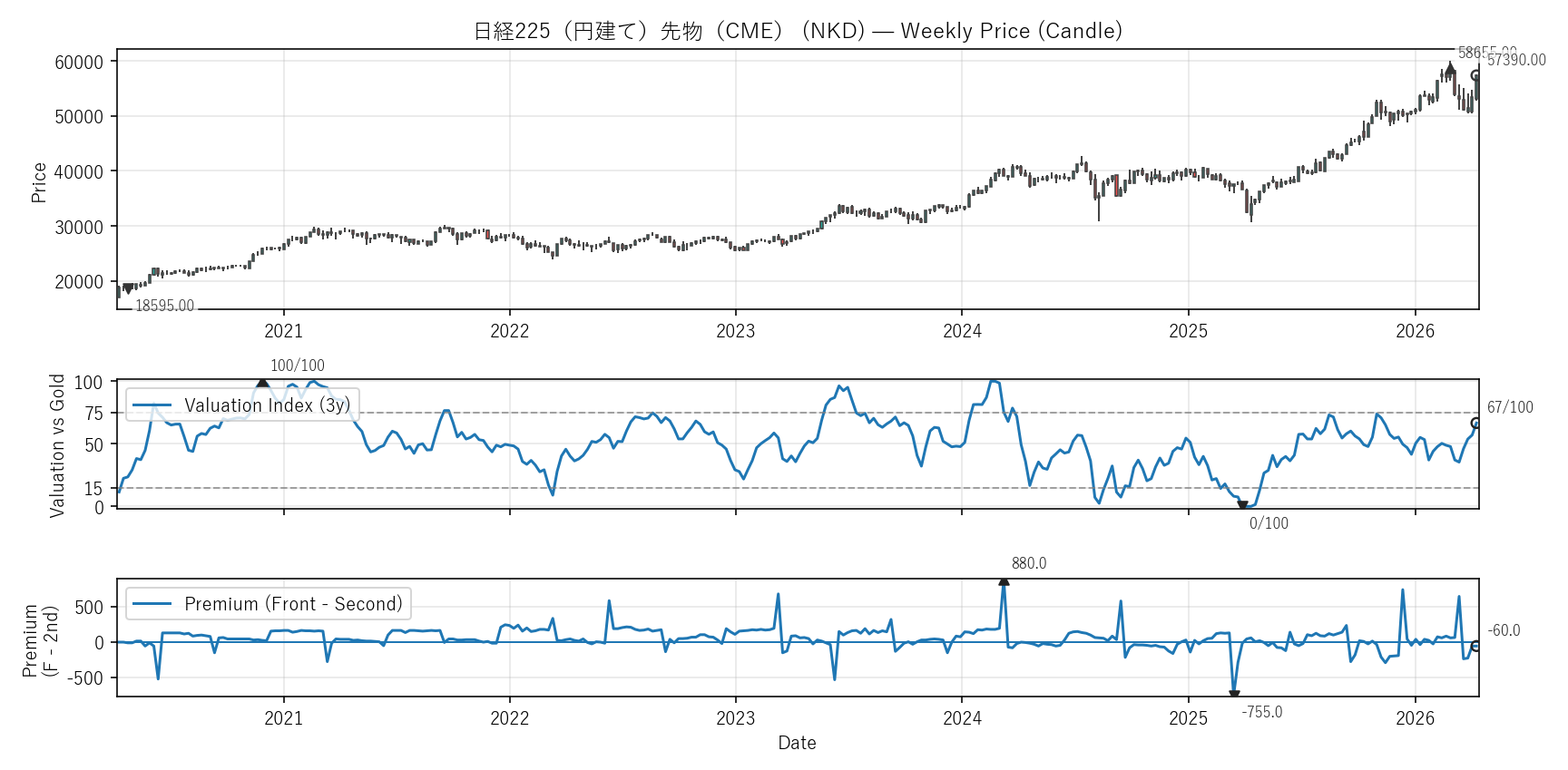 先週比(2026-04-10):Valuation:+4.7pt(67 → 71) / Premium:+0.0(-60.0 → -60.0)