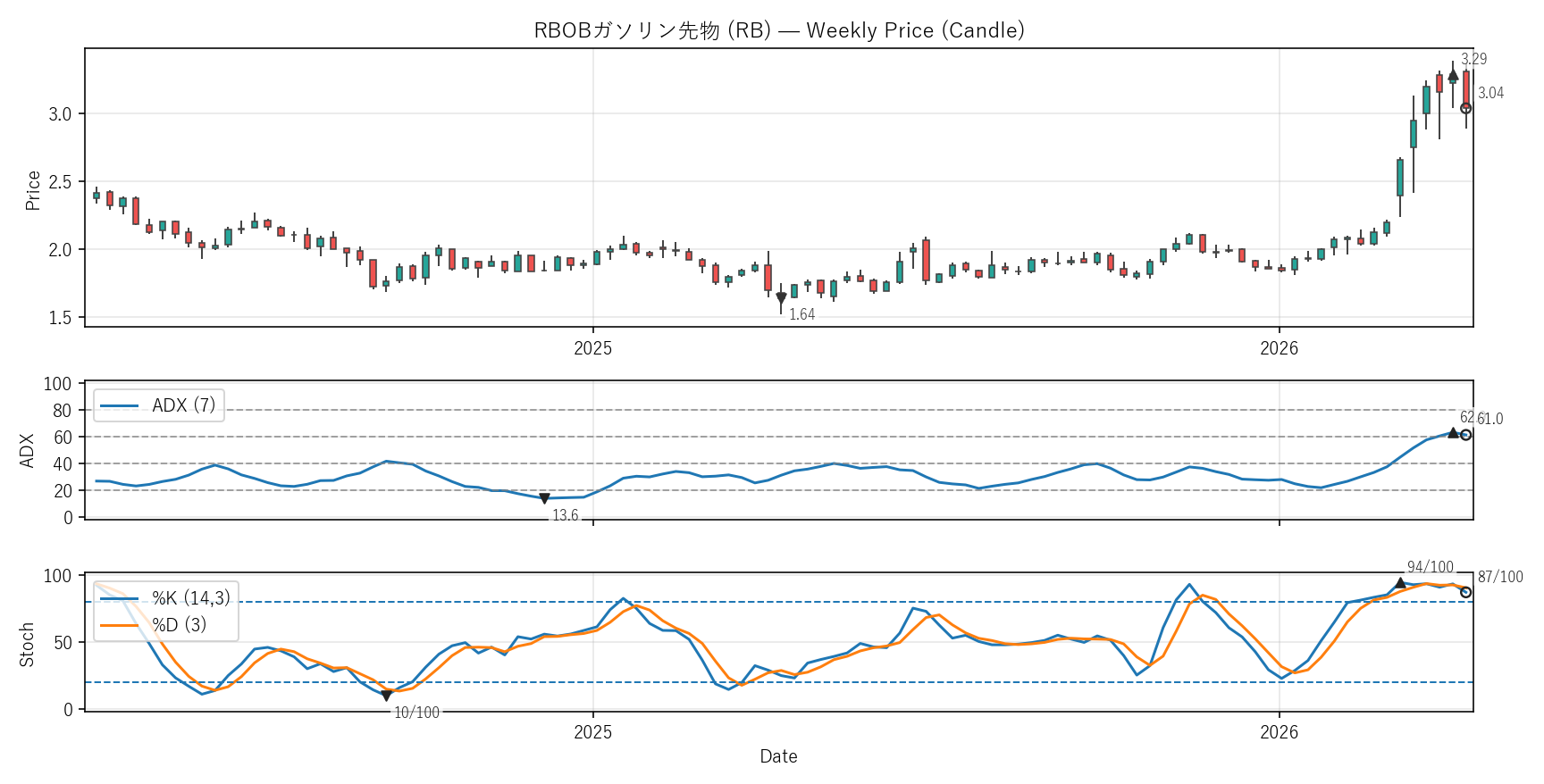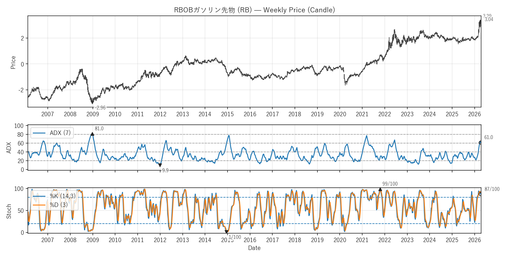 ADX:61.0(13.6〜62.9)|位置 96/100 / Stoch %K:87(10〜94)|位置 91/100