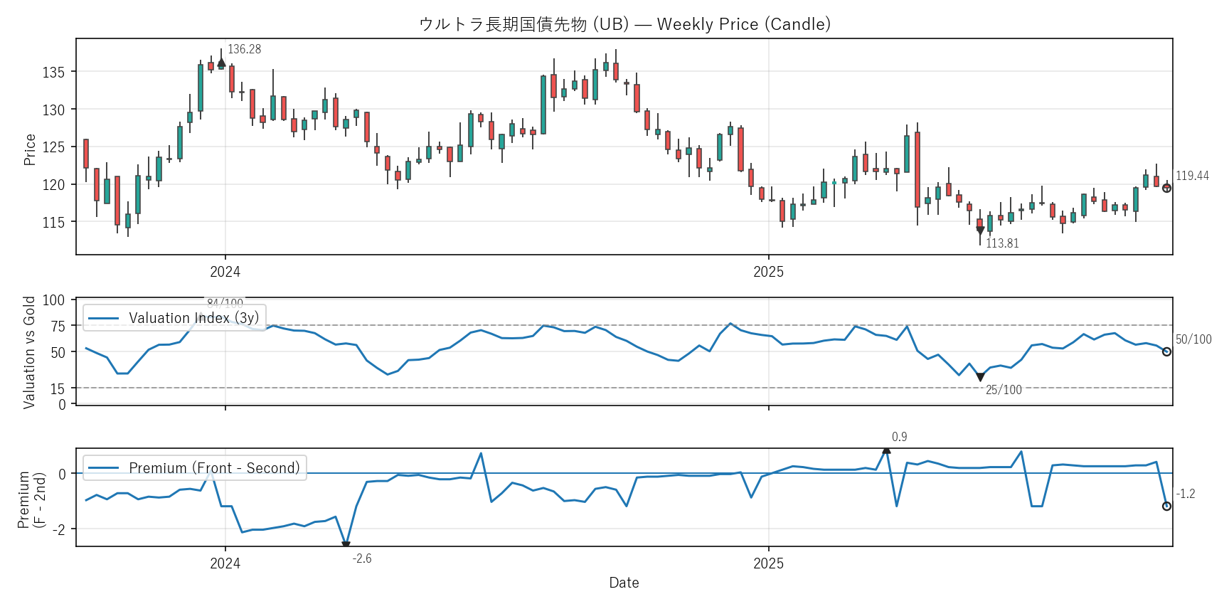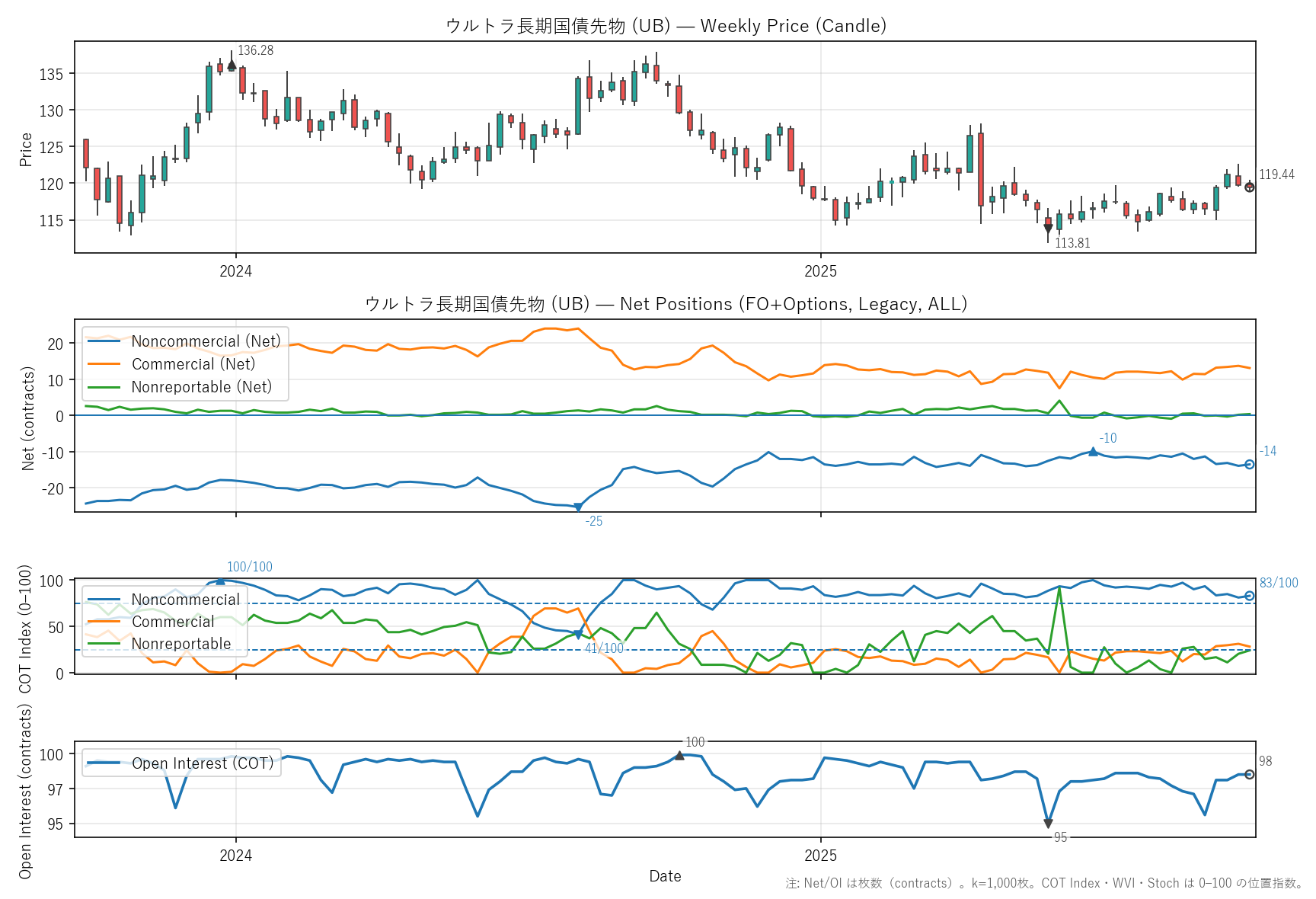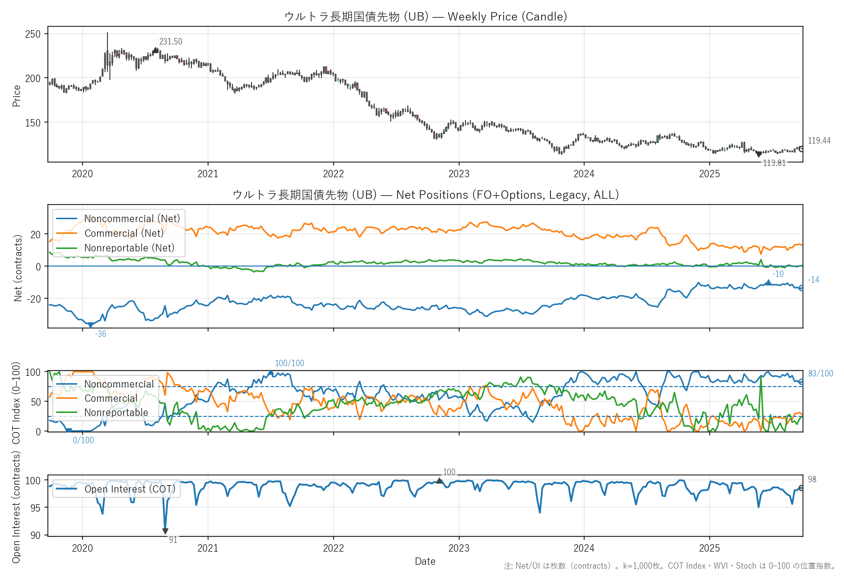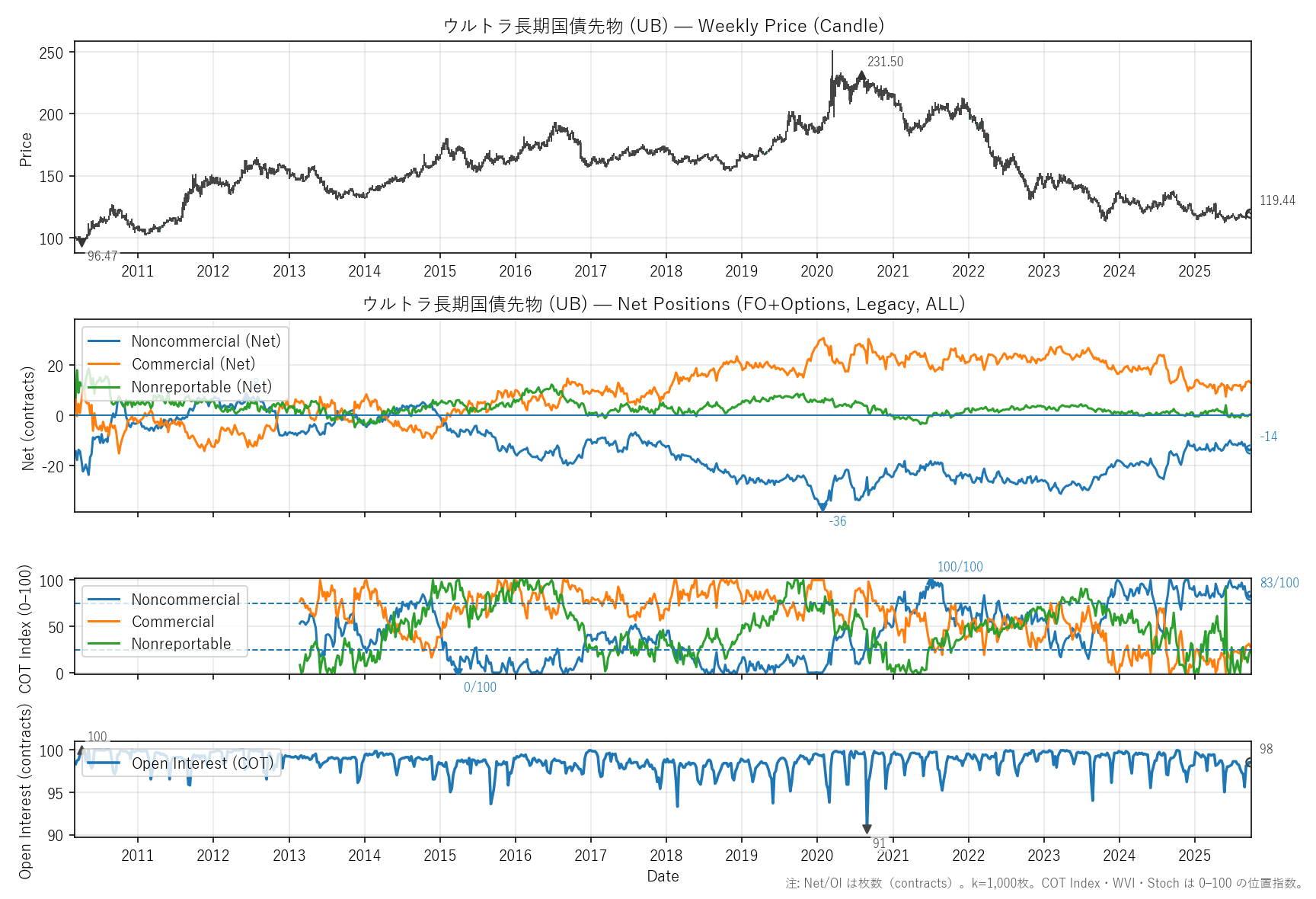 ウルトラ長期国債先物(UB)COTレポート・バリュエーション・テクニカル【週足】