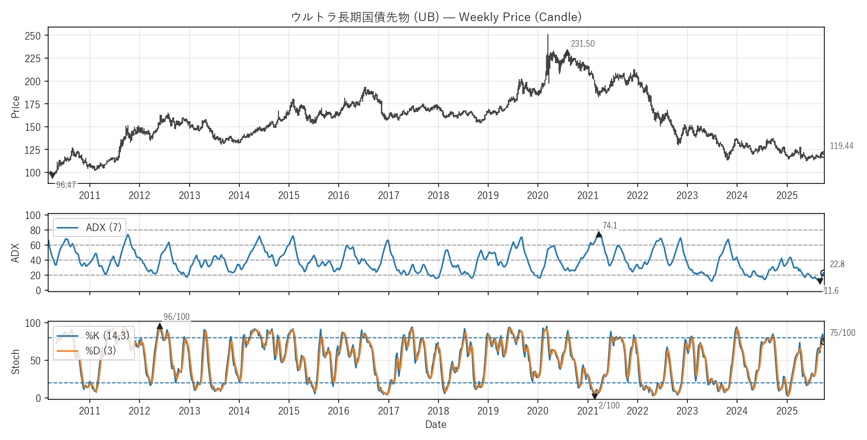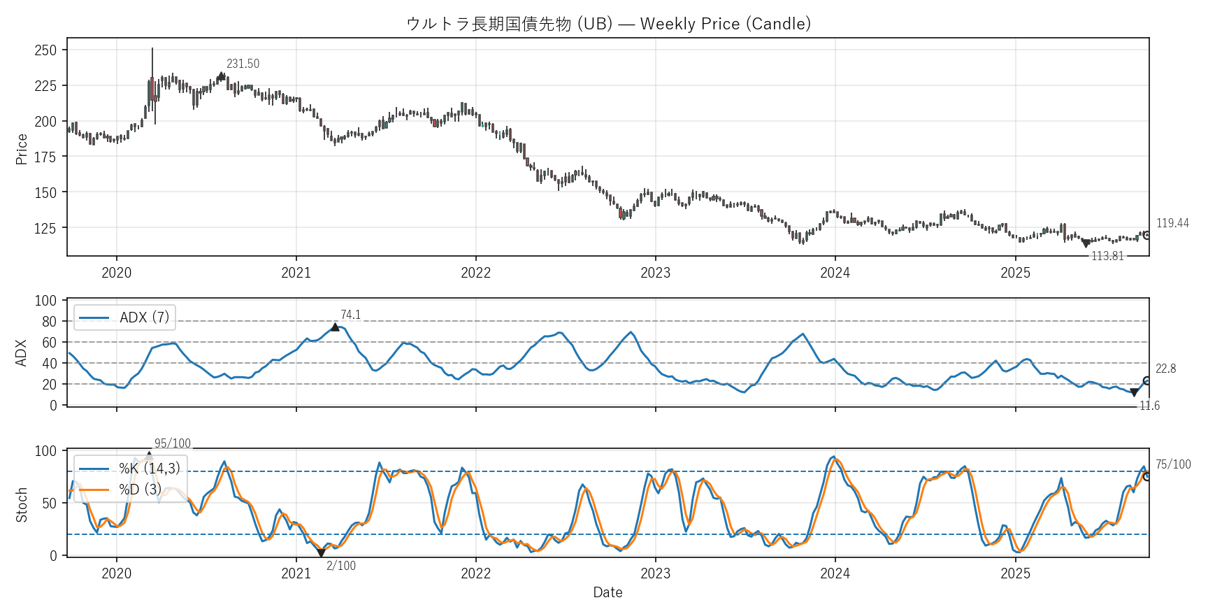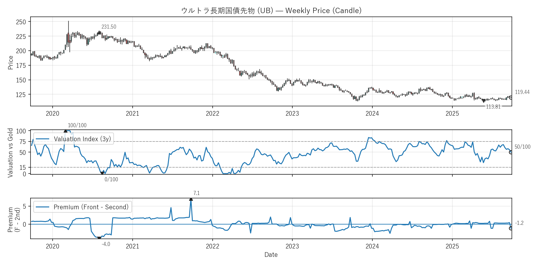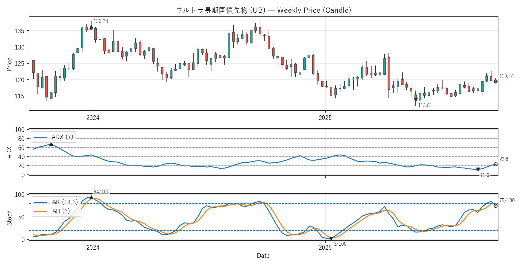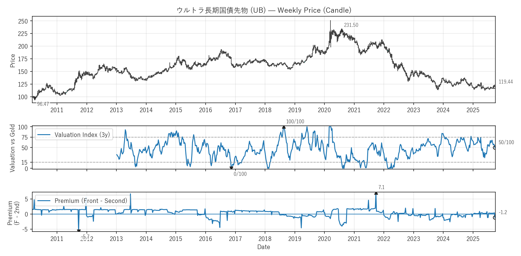 ウルトラ長期国債先物(UB)COTレポート・バリュエーション・テクニカル【週足】
