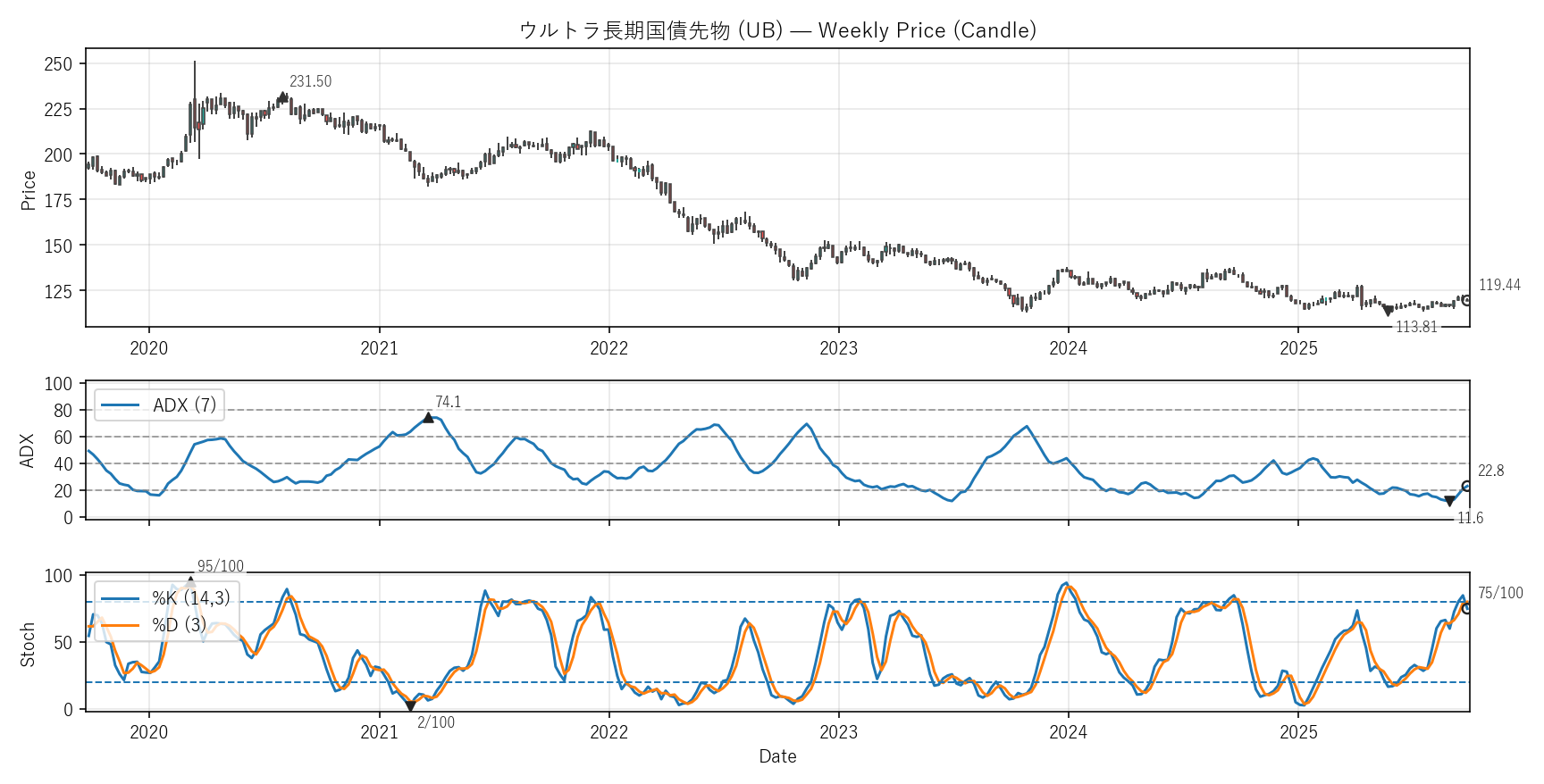 先週比(2025-09-26):週次リターン:+1.40%(終値 120.41 → 122.09) / ADX:+3.6pt(25 → 29)