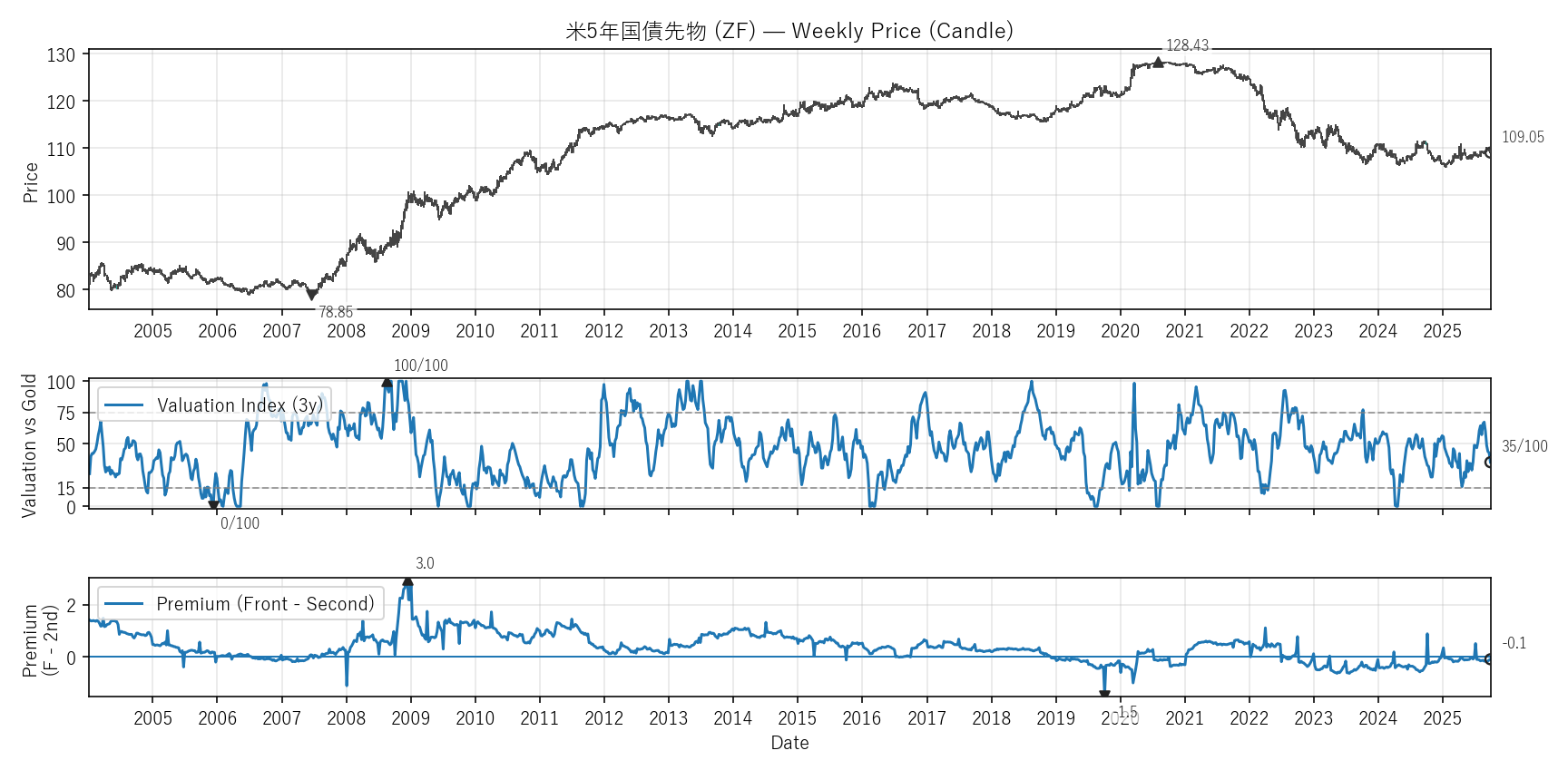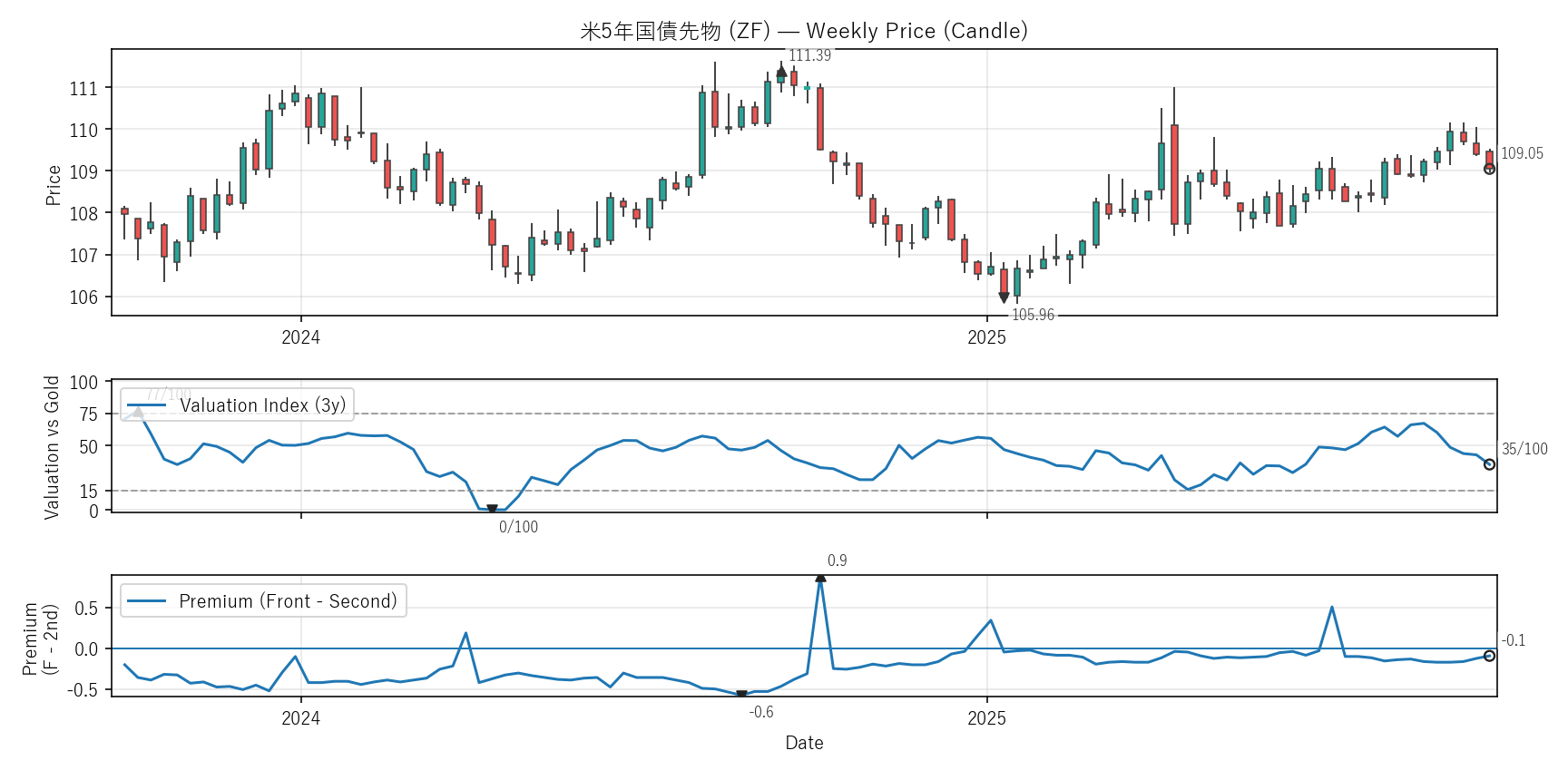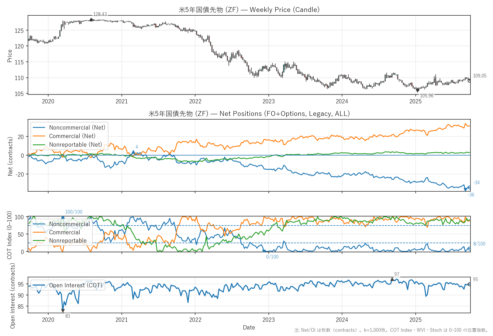 米5年国債先物(ZF)COTレポート・バリュエーション・テクニカル【週足】