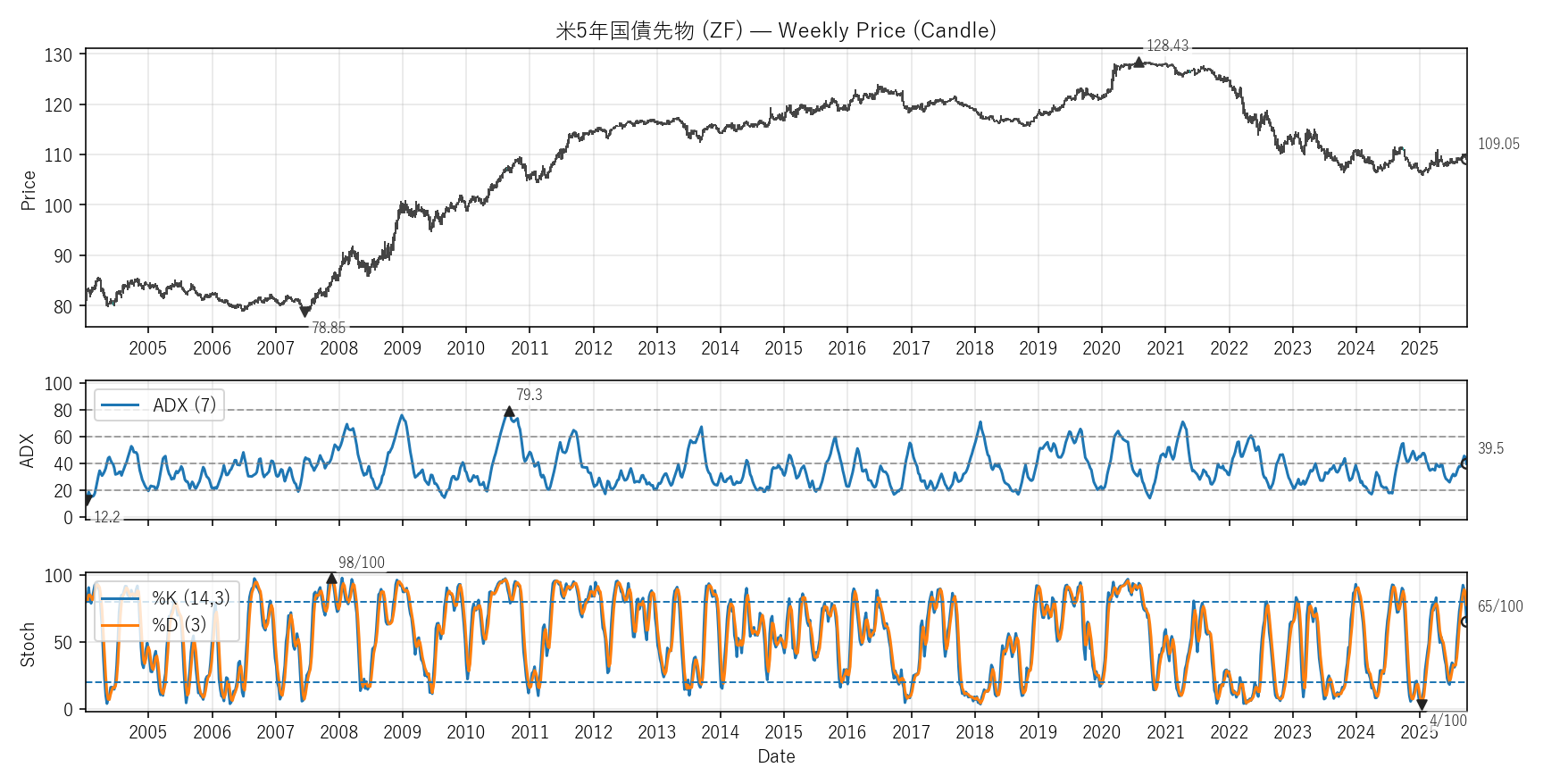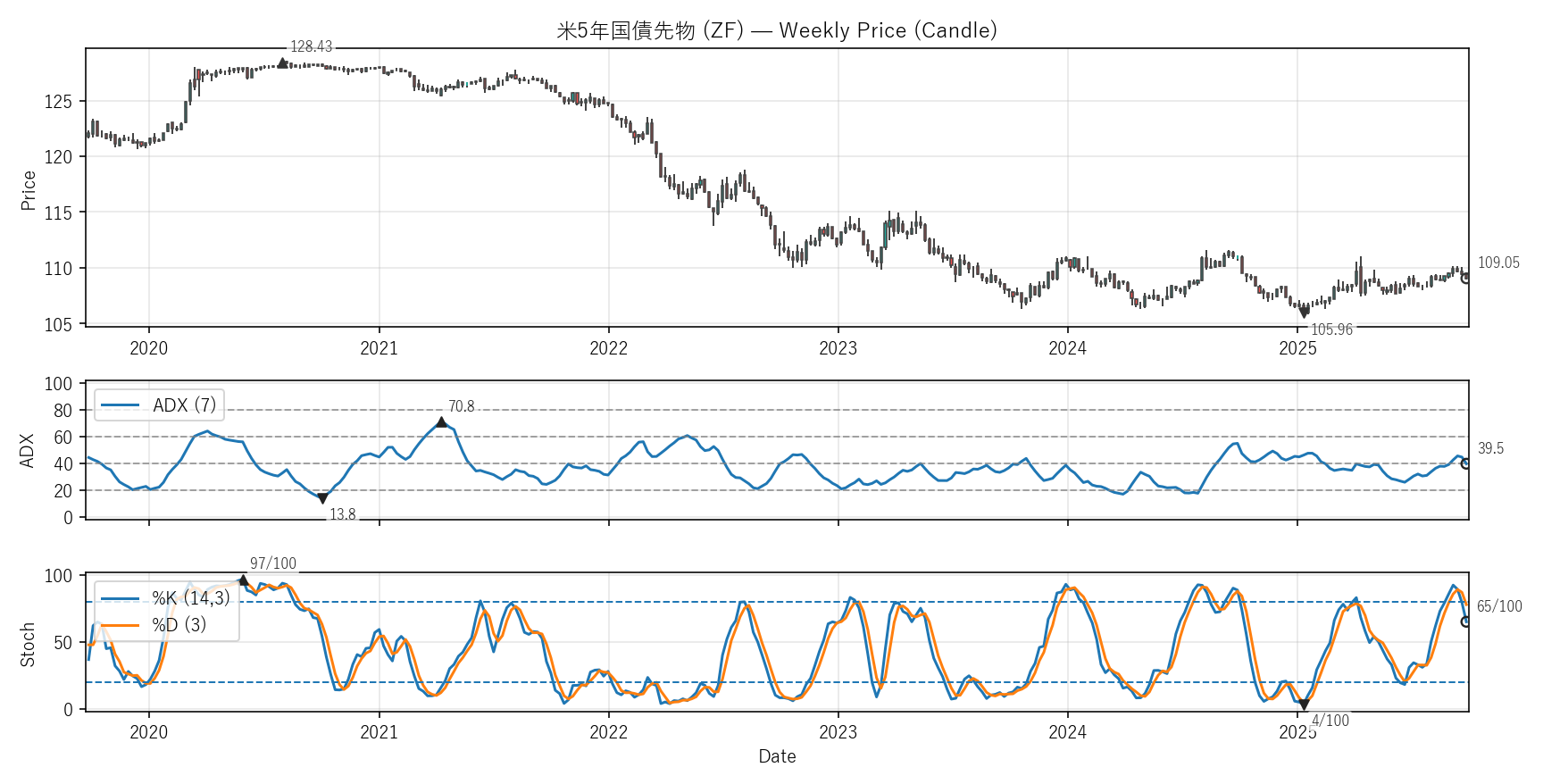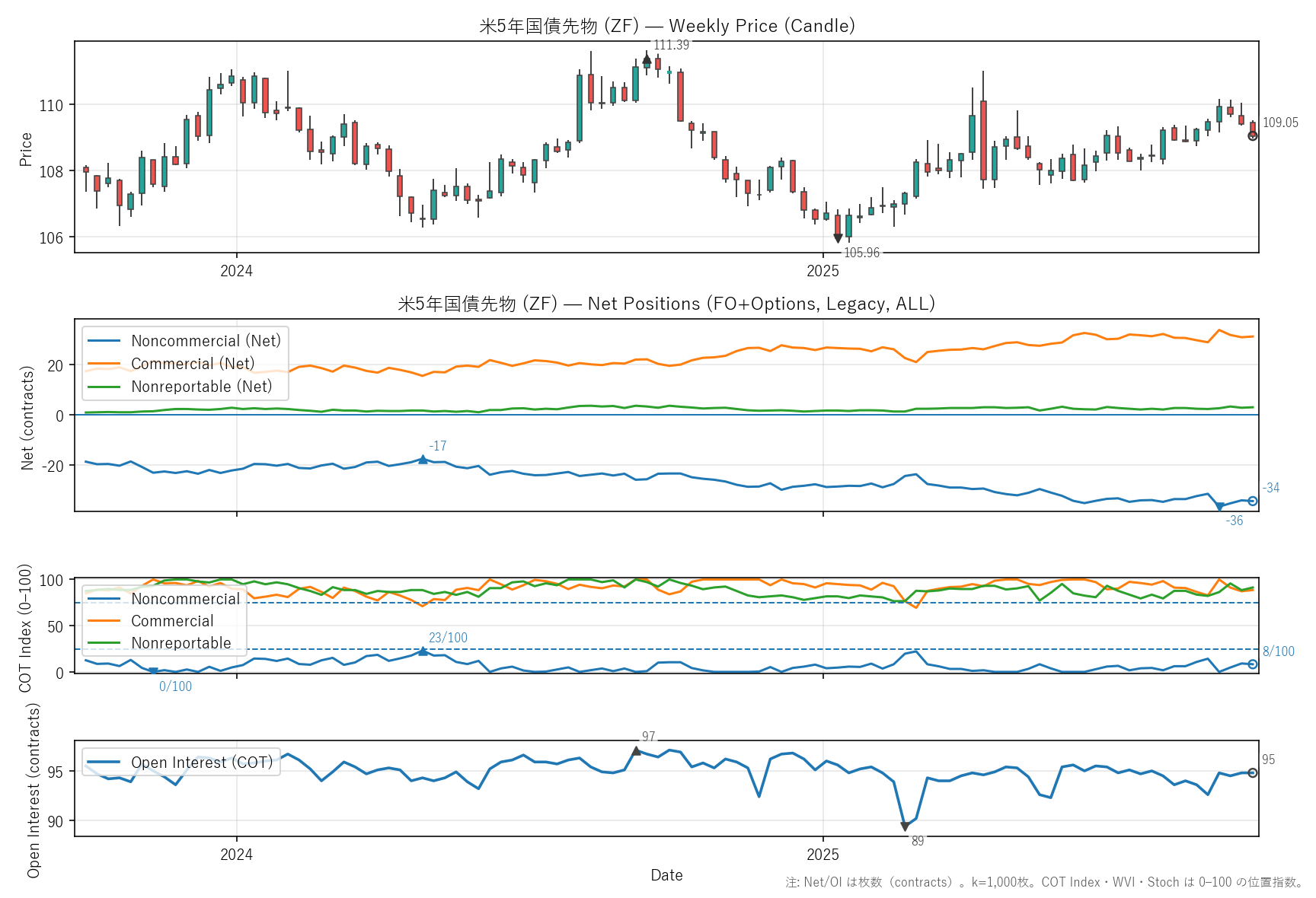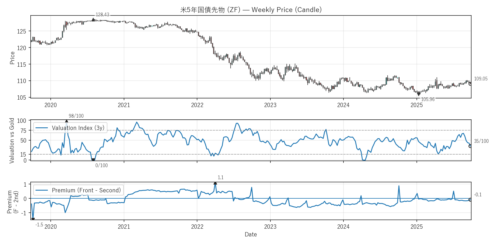 米5年国債先物(ZF)COTレポート・バリュエーション・テクニカル【週足】