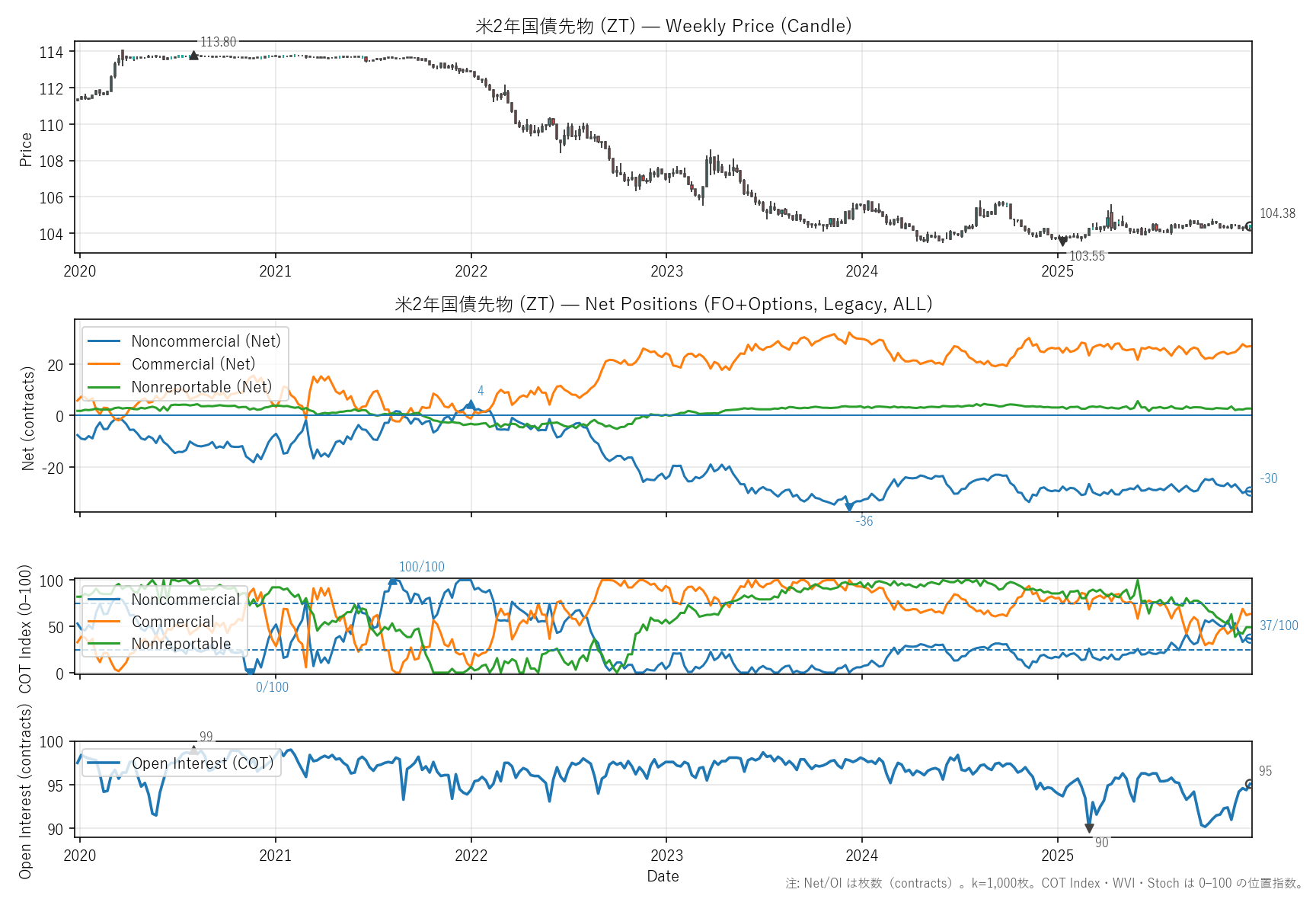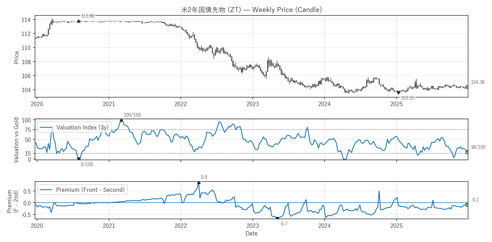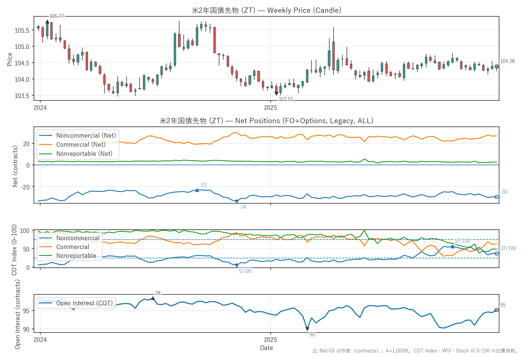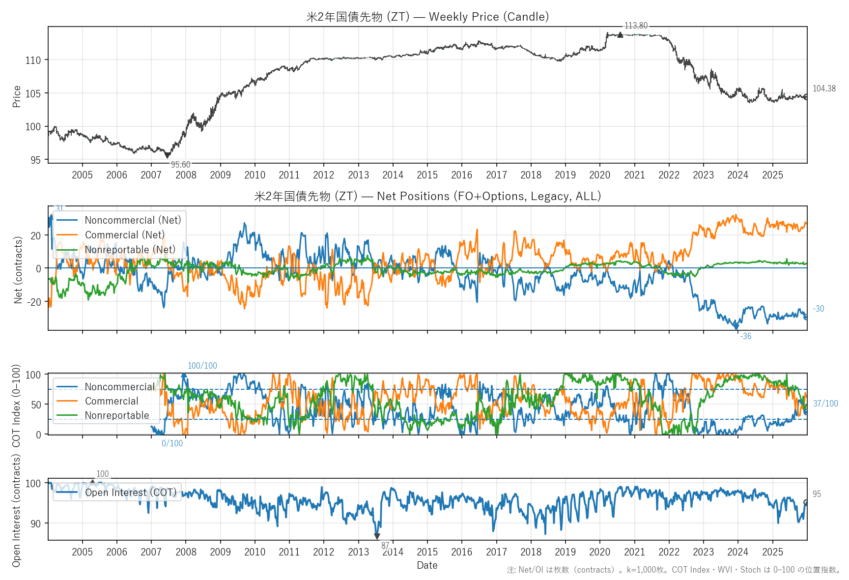米2年国債先物(ZT)COTレポート・バリュエーション・テクニカル【週足】