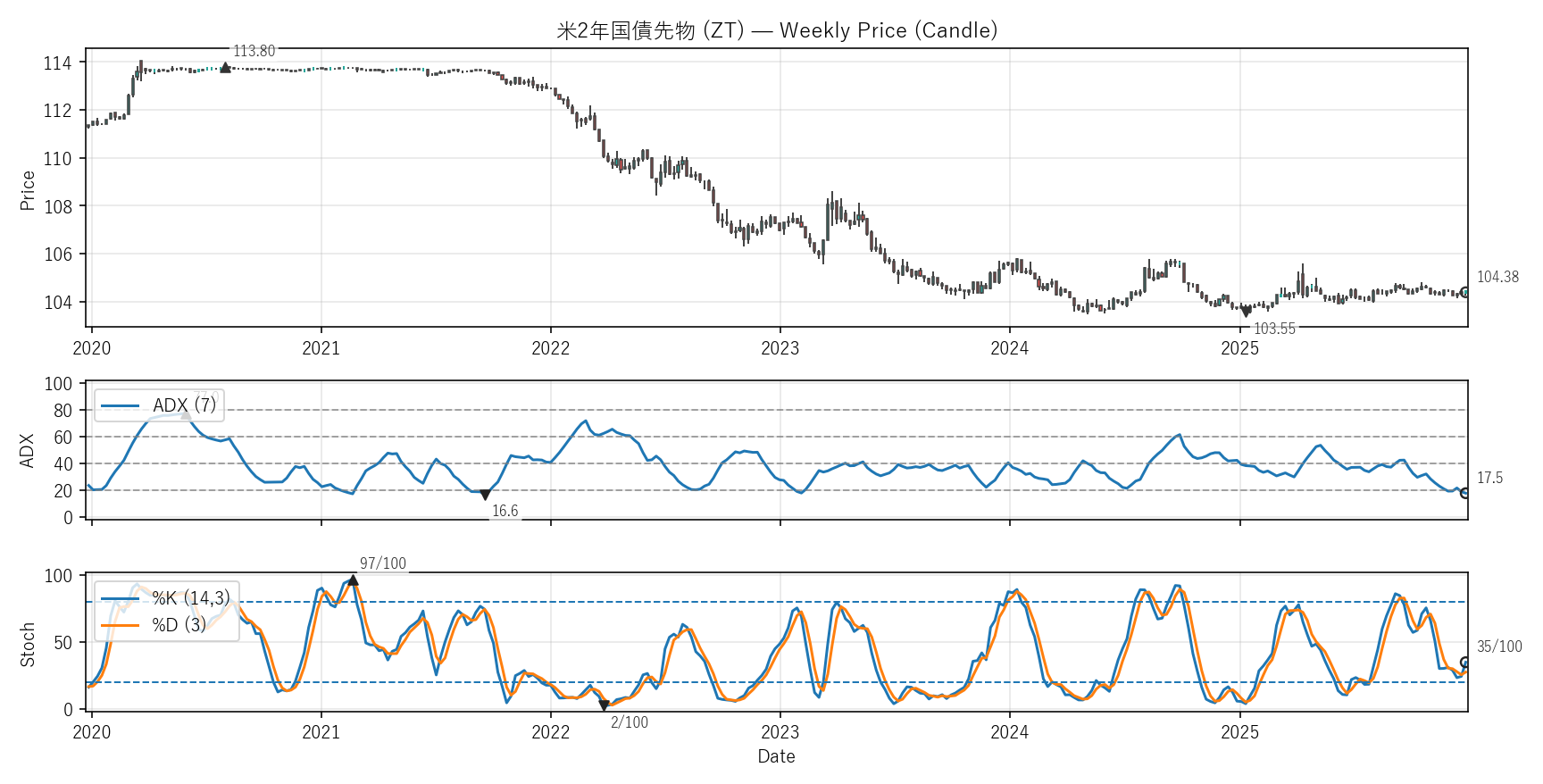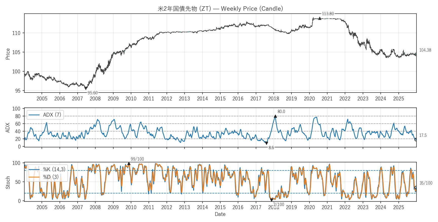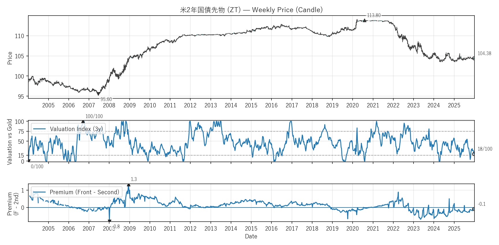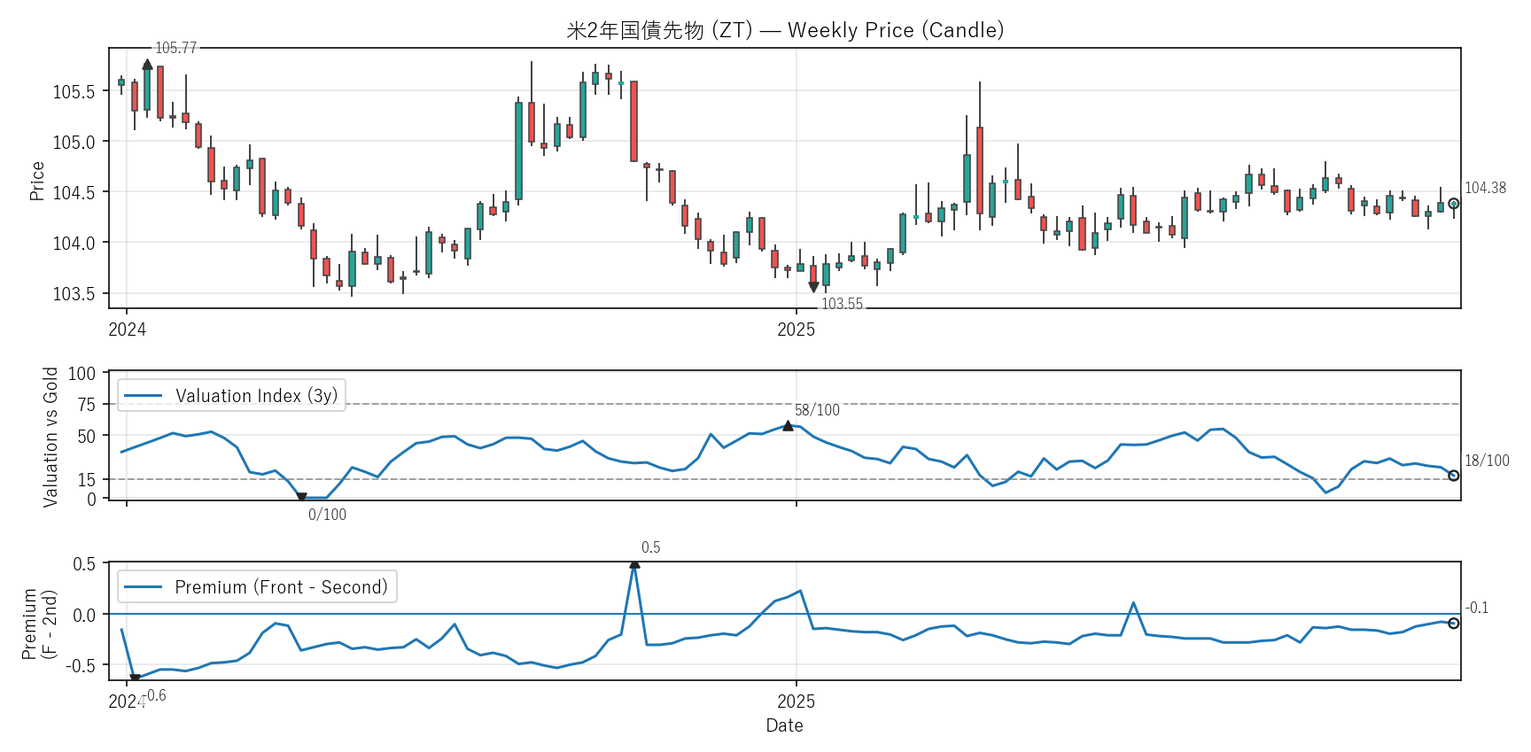 米2年国債先物(ZT)COTレポート・バリュエーション・テクニカル【週足】