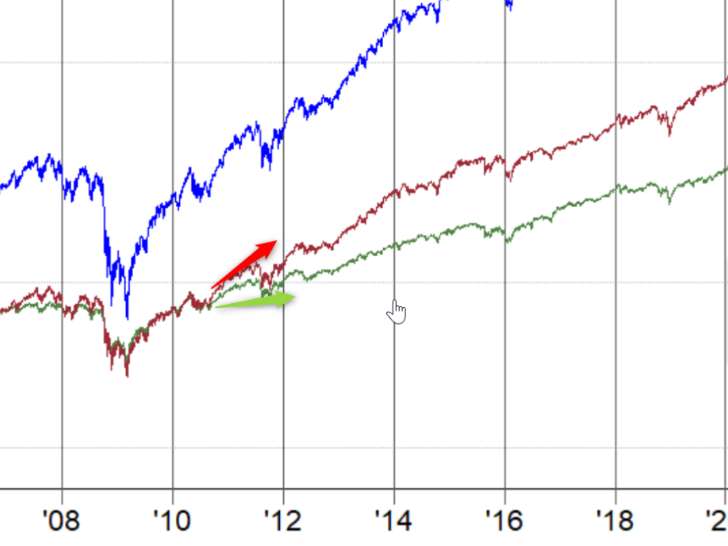 1999年から2010年頃までを見ると、実は両者のパフォーマンスはほぼ互角です。