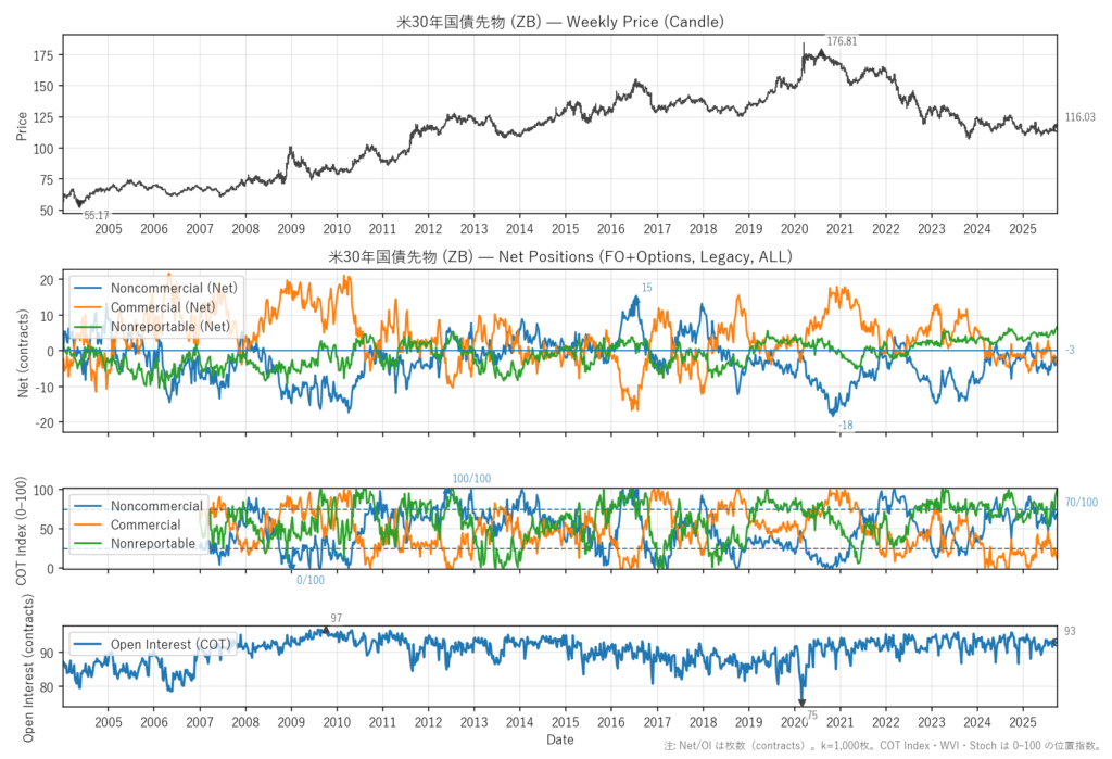 米30年国債先物(ZB)COTレポート・バリュエーション・テクニカル【週足】