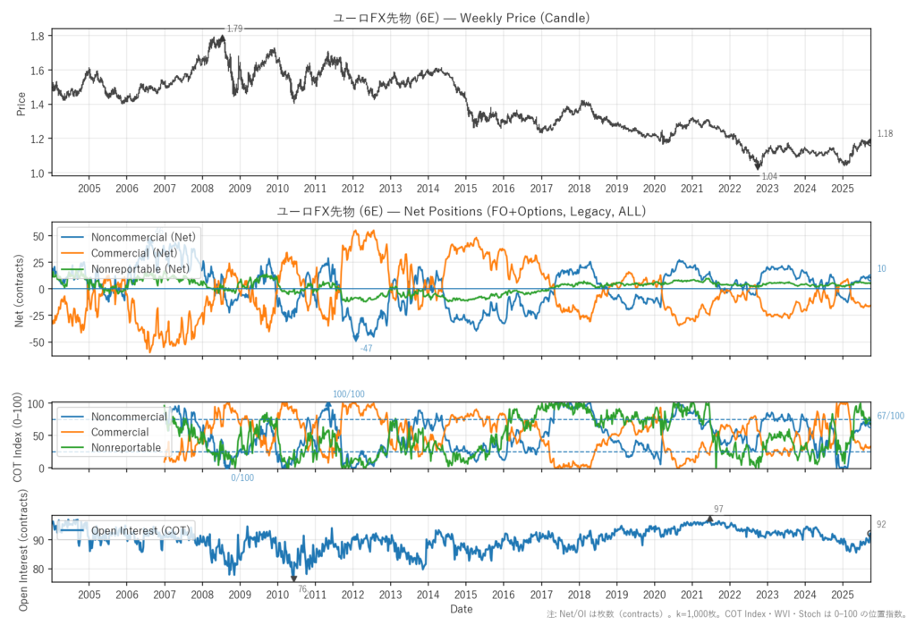 更新: 2025年9月27日 に最新データで更新しました。(COT週次データ: 2025-09-26 時点) ユーロFX先物のCOTレポートです。 この銘柄について ユーロ/米ドルの先物。FX/CFD例: EURUSD。注意: EURUSDと同方向に動きやすく、米ドル指数とは逆方向になりがち。... -