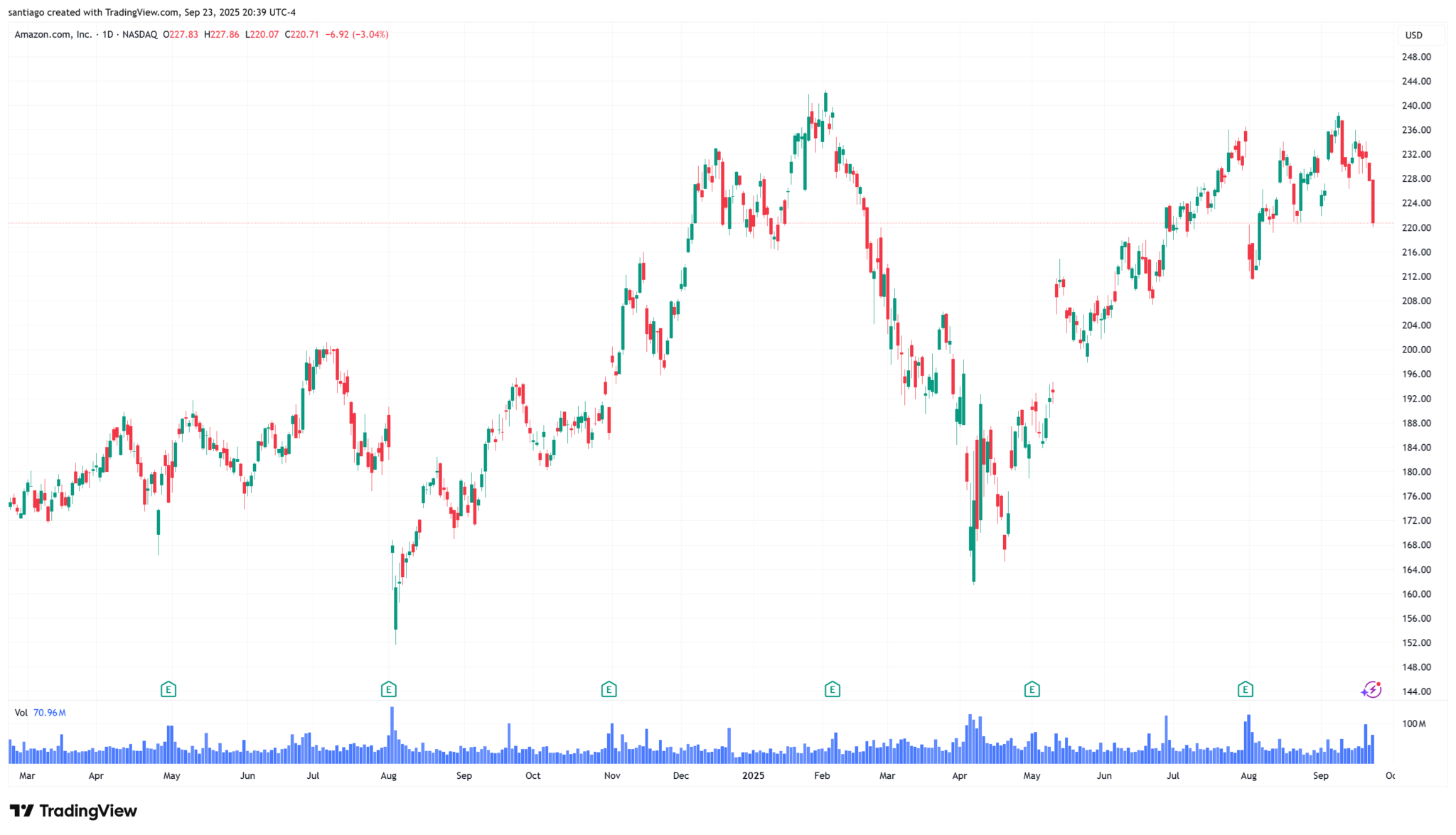 下げの中心になったのはNvidia(NVDA)とAmazon(AMZN)といった主力株。特にAMZNは50日移動平均線を明確に割り込み、チャート的に弱さが目立ちました。NVDAはまだ大きな流れは崩していませんが、テック株全体に慎重なムードが広がったのは確かです。