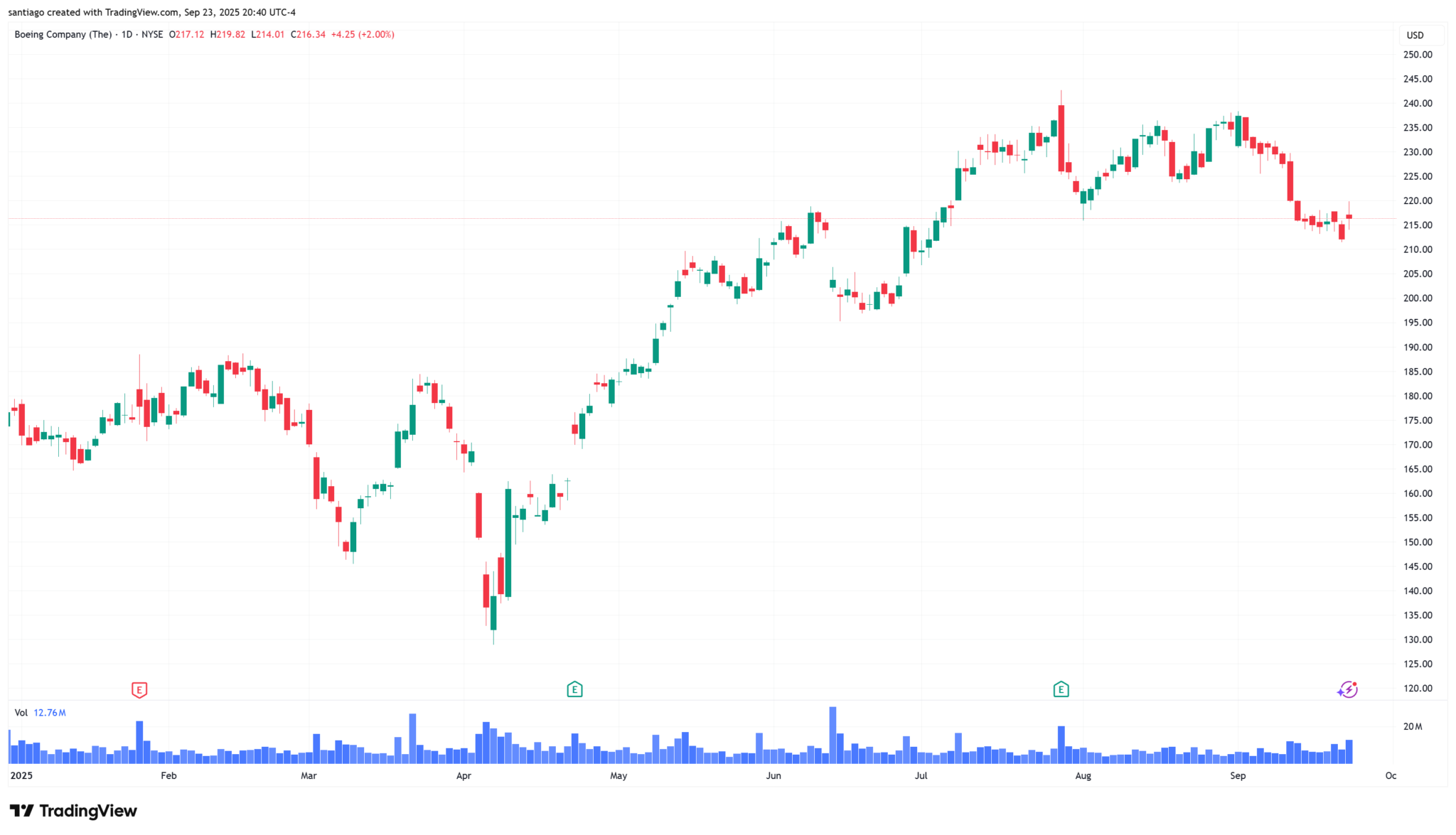 BAは+2%。ウズベキスタン航空との契約や中国との大型契約観測が好感されました。ただし、テクニカル的には9月中旬に50日線を割り込んでおり、225~227ドル付近が戻りの壁になりそうです。