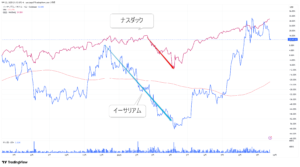 ナスダックはハイテク株が多く集まる指数です。IT、AI、半導体など「成長力がある」と期待される企業が多い分、投資家の心理が変わると動きが急になりやすい特徴があります。