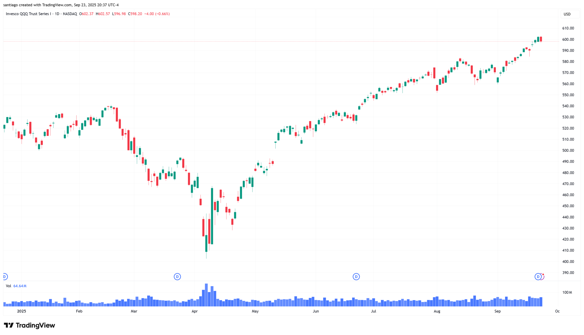 この言葉を受けて、午後から市場全体で売りが強まりました。とくにハイテク株中心のナスダックは約1%下落、出来高も増えたため、機関投資家の売りが入ったシグナルとみられます。