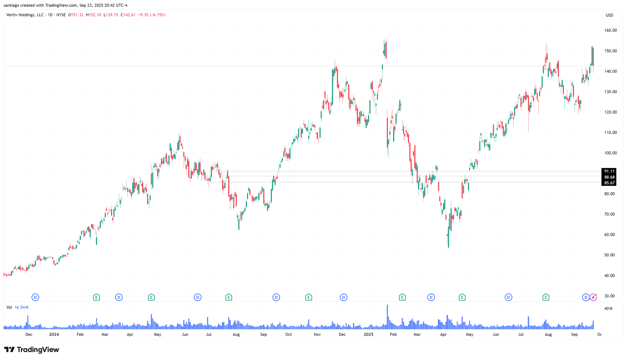 データセンター向け冷却システムを手がけるVertiv(VRT)が-6%と大きく売られました。Microsoftが新しい冷却技術を発表したことが背景です。同業のModine Manufacturing(MOD)も-3%以上。その他、Bloom Energy(BE)、Reddit(RDDT)、Coherent(COHR)、Oracle(ORCL)といったAI関連も4〜10%下げました。