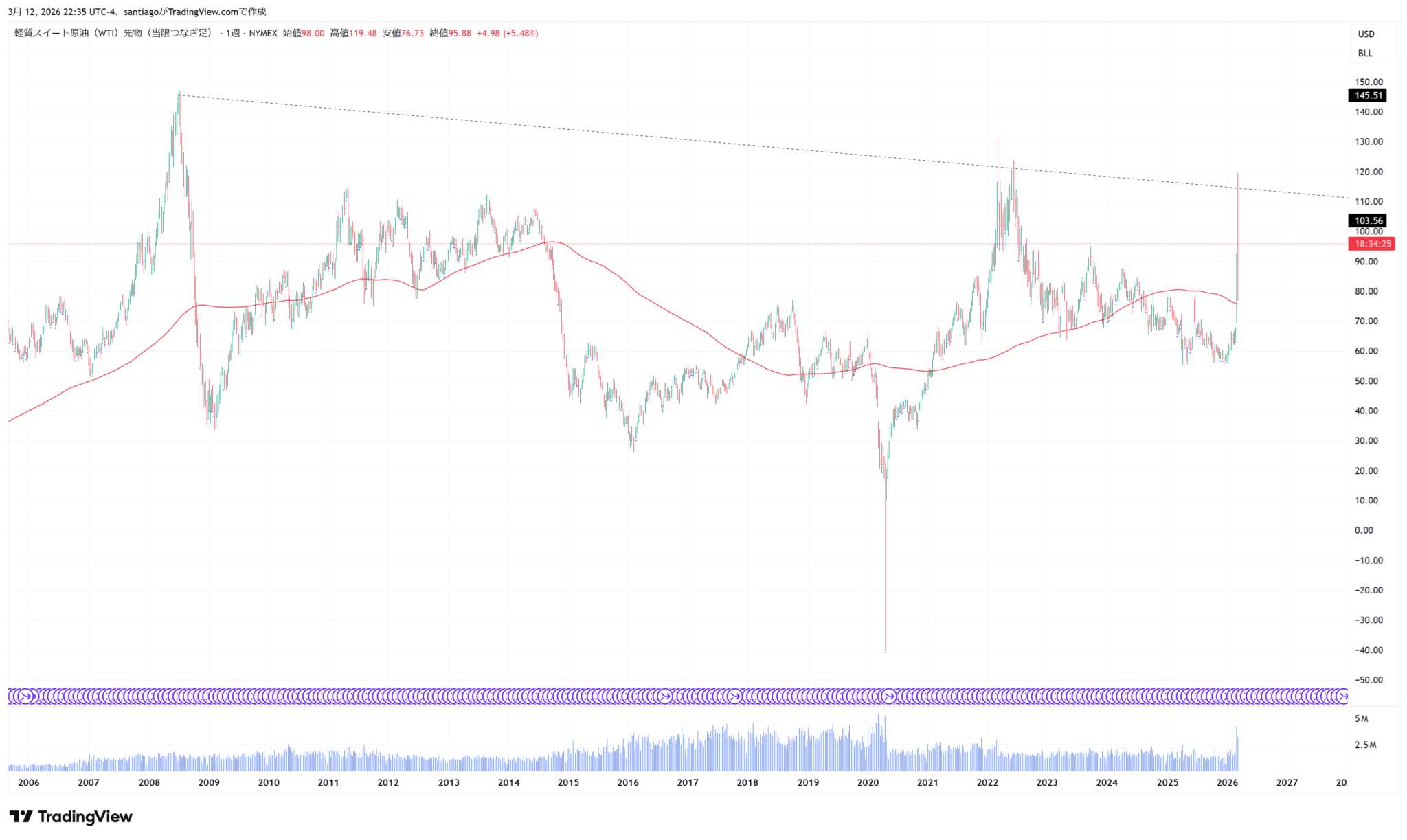 過去を振り返ると、景気サイクルが本当に崩れるときは、原油が「急騰したまま長期間高止まりする」ケースが多いです。つまり、短期のショックよりも、持続的なコスト上昇の方が問題になります。